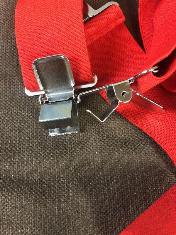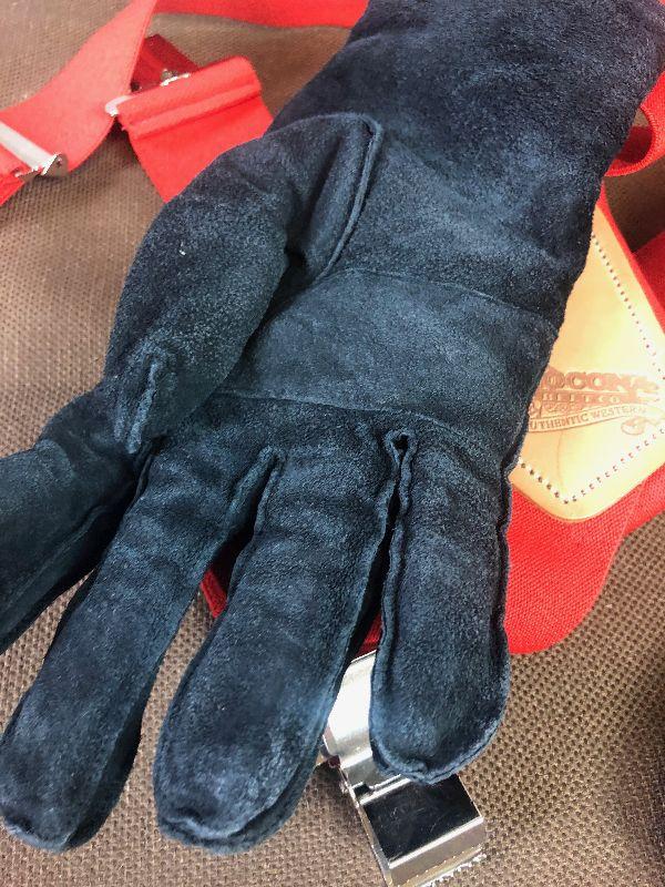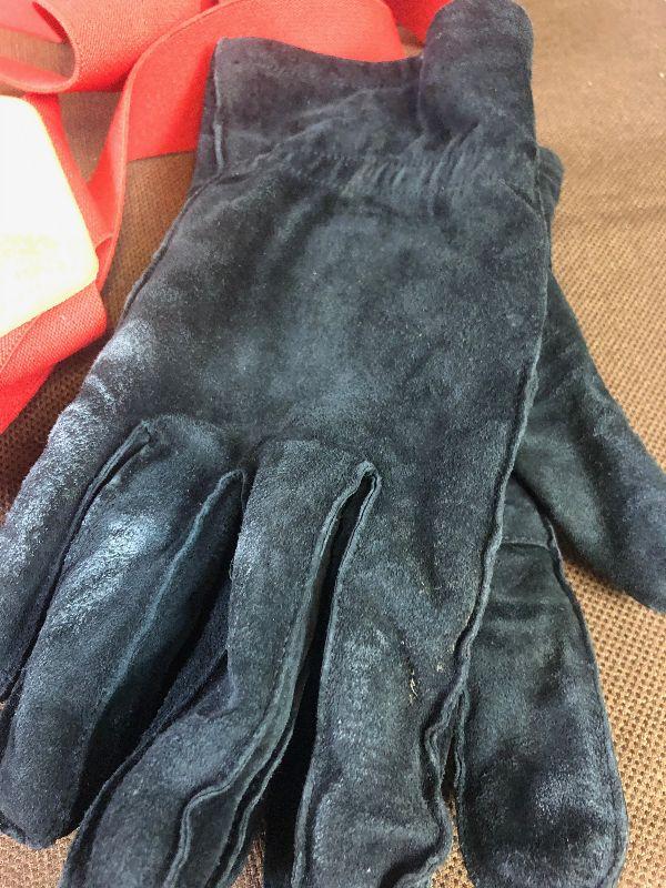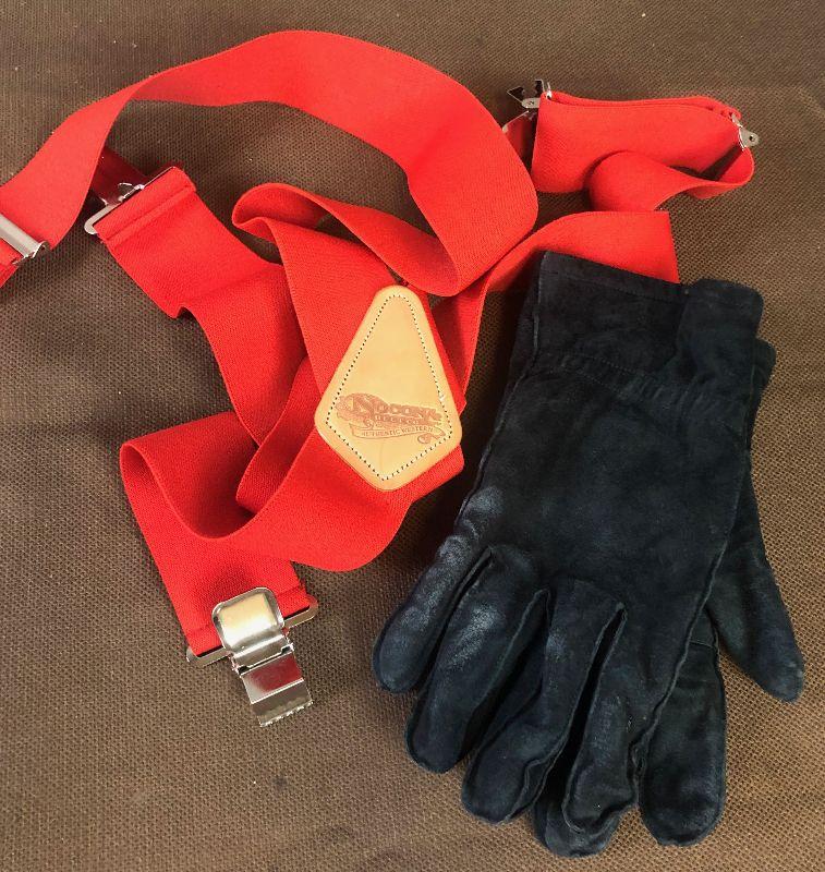 #128 Black Leather Gloves Red Suspenders