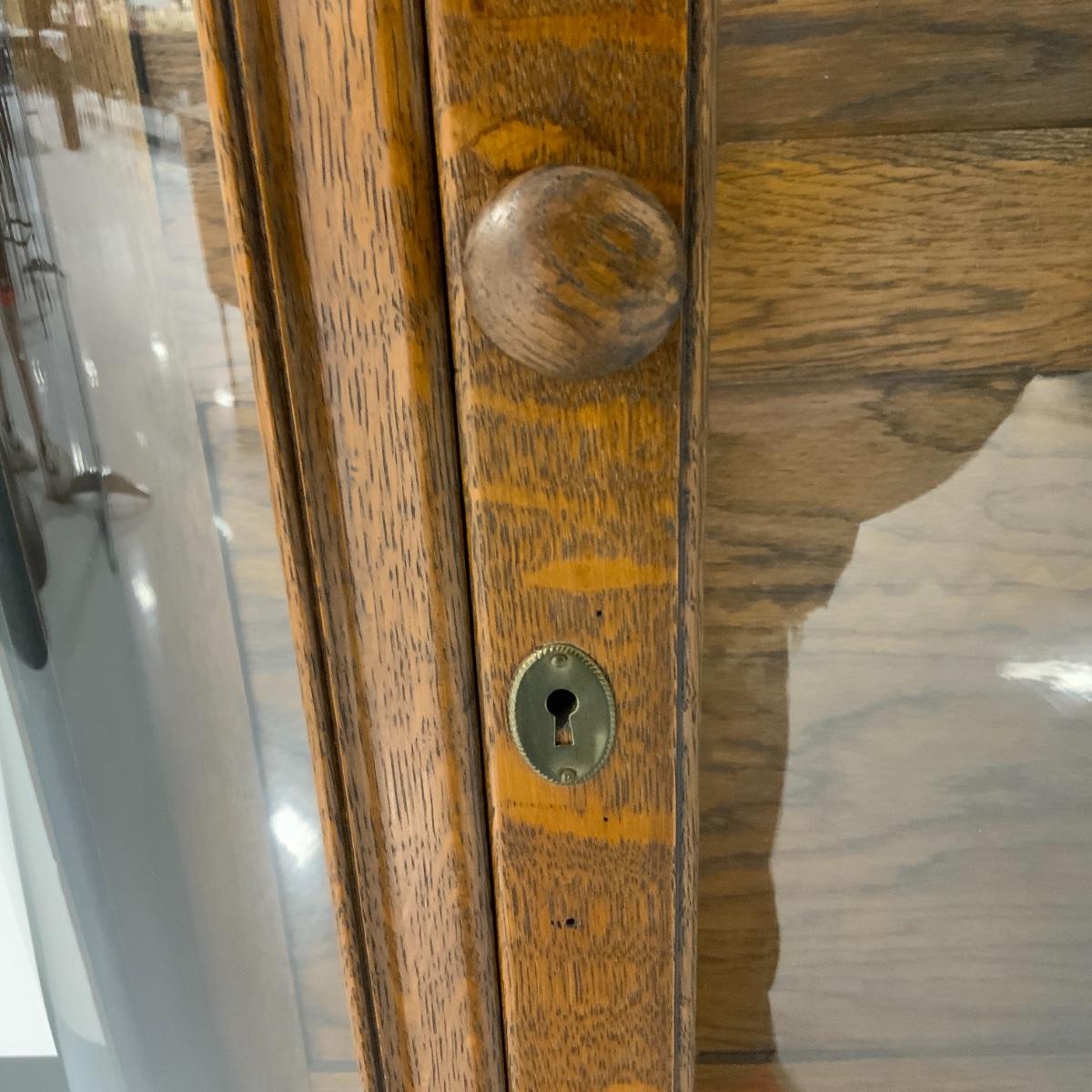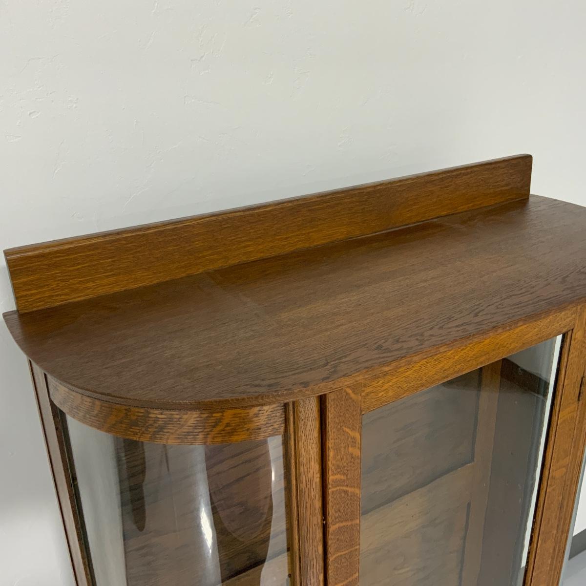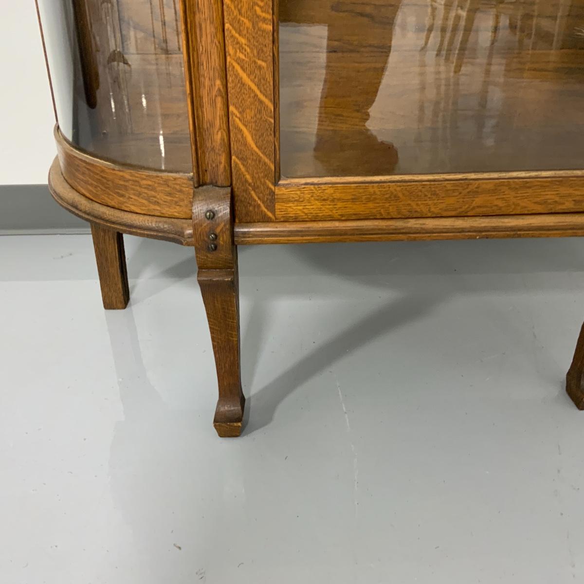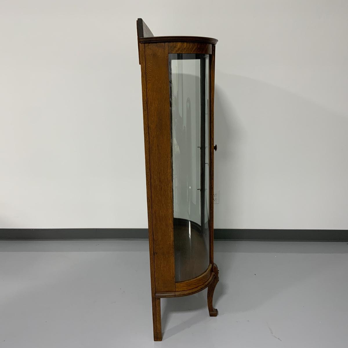 From the Estate of Peter Radovanovich: Beautiful Oak Curved Glass Curio Cabinet. Includes three adjustable shelves and the brackets to hold them in place. Key is also included. Curio Measures 62” x 37” x 14”. Please see photos for details and condition. ::: Shipping is NOT available on this lot. If you have any questions regarding this lot please contact the auctioneer either via this website, by direct email or by phone. PICK UP TIMES and other important information can be found in the TERMS and DESCRIPTION of the auction. Please take a look for pertinent information. Thanks!