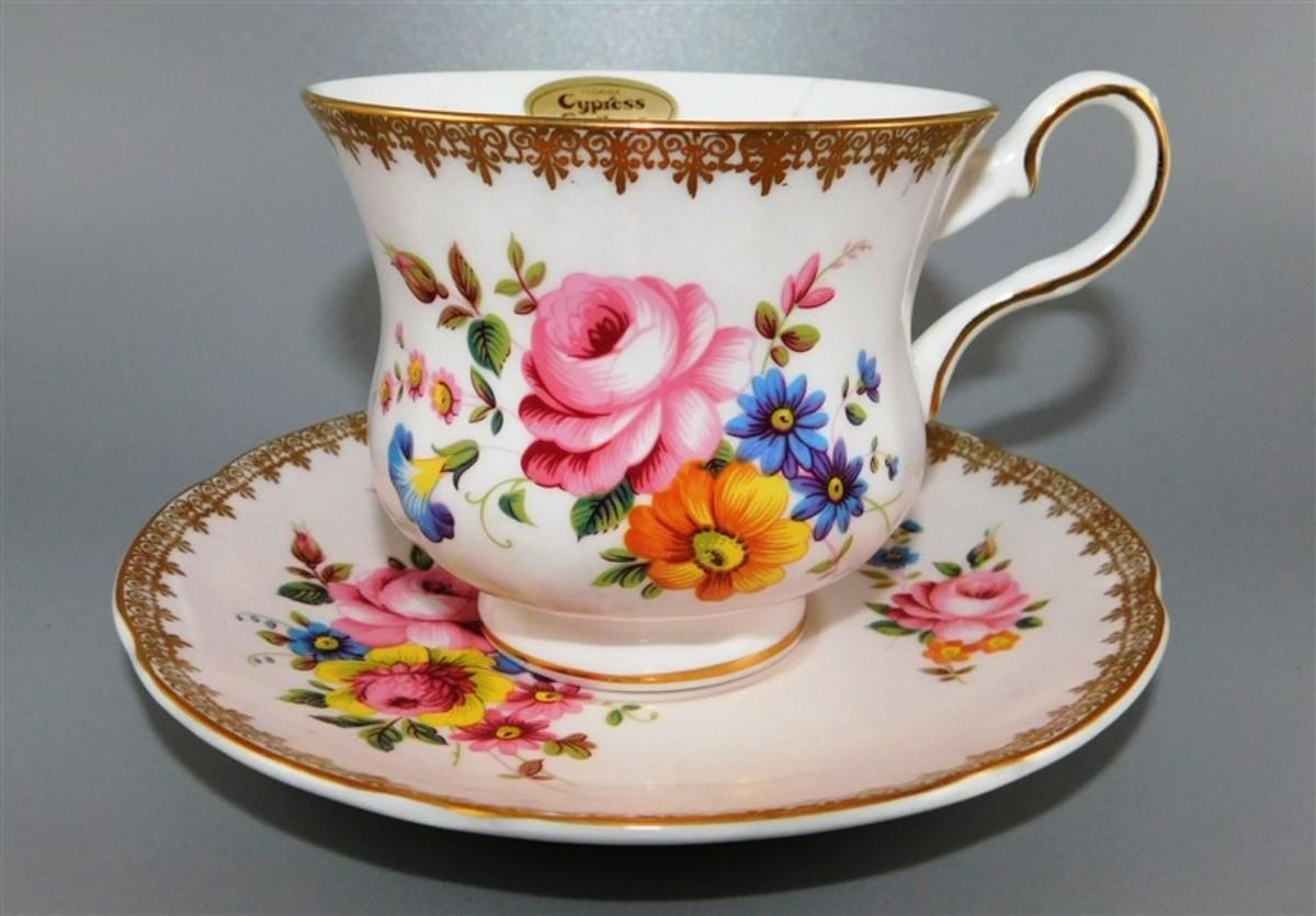 128 Lot of Cups and Saucers with Stands - Rossetti Antique Rose / Royal Grafton