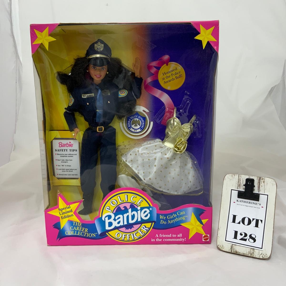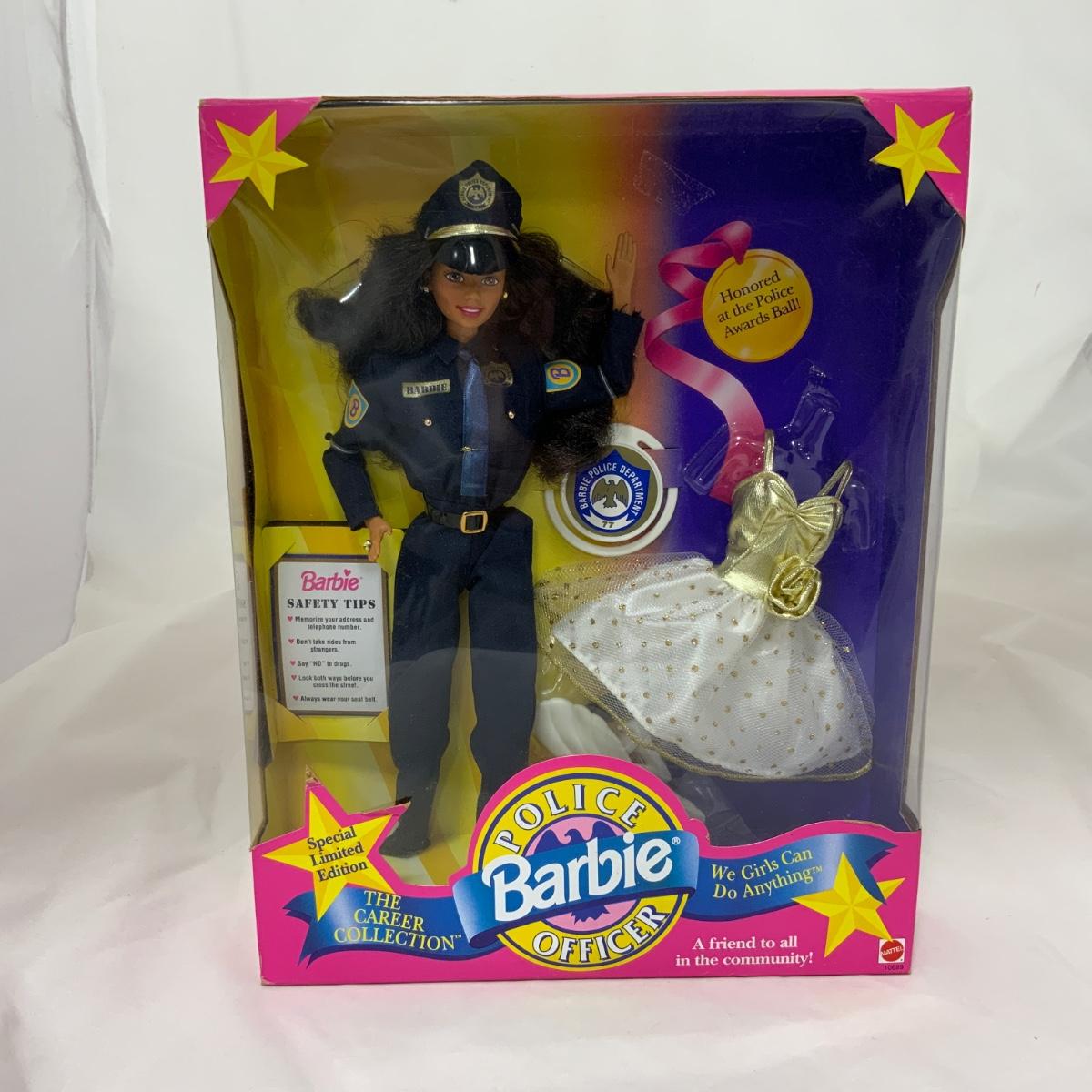 Police Officer Barbie, part of the Career Collection, a Special Limited Edition doll. Produced by Mattel in 1993. New, in Box. Box does show some wear. Please see photos for details and condition. !!! Proceeds from this auction will be donated to the NEW COMMUNITY SHELTER in Green Bay, Wisconsin. Please see Sale Description to the Left for more information. !!! ::: Shipping is available on this lot. If you require shipping you must let us know at the close of the auction. We will coordinate with you after the item has been won. Shipping fees will include insurance up to or exceeding the value of all items being mailed. If you have any questions regarding this lot please contact the auctioneer either via this website, by direct email or by phone. PICK UP TIMES and other important information can be found in the TERMS and DESCRIPTION of the auction. Please take a look for pertinent information. Thanks!