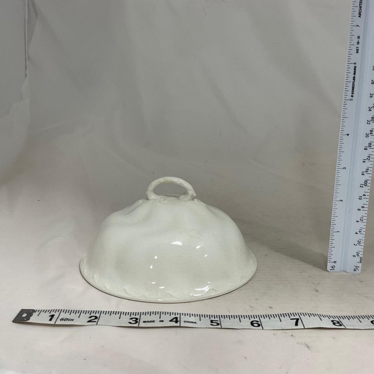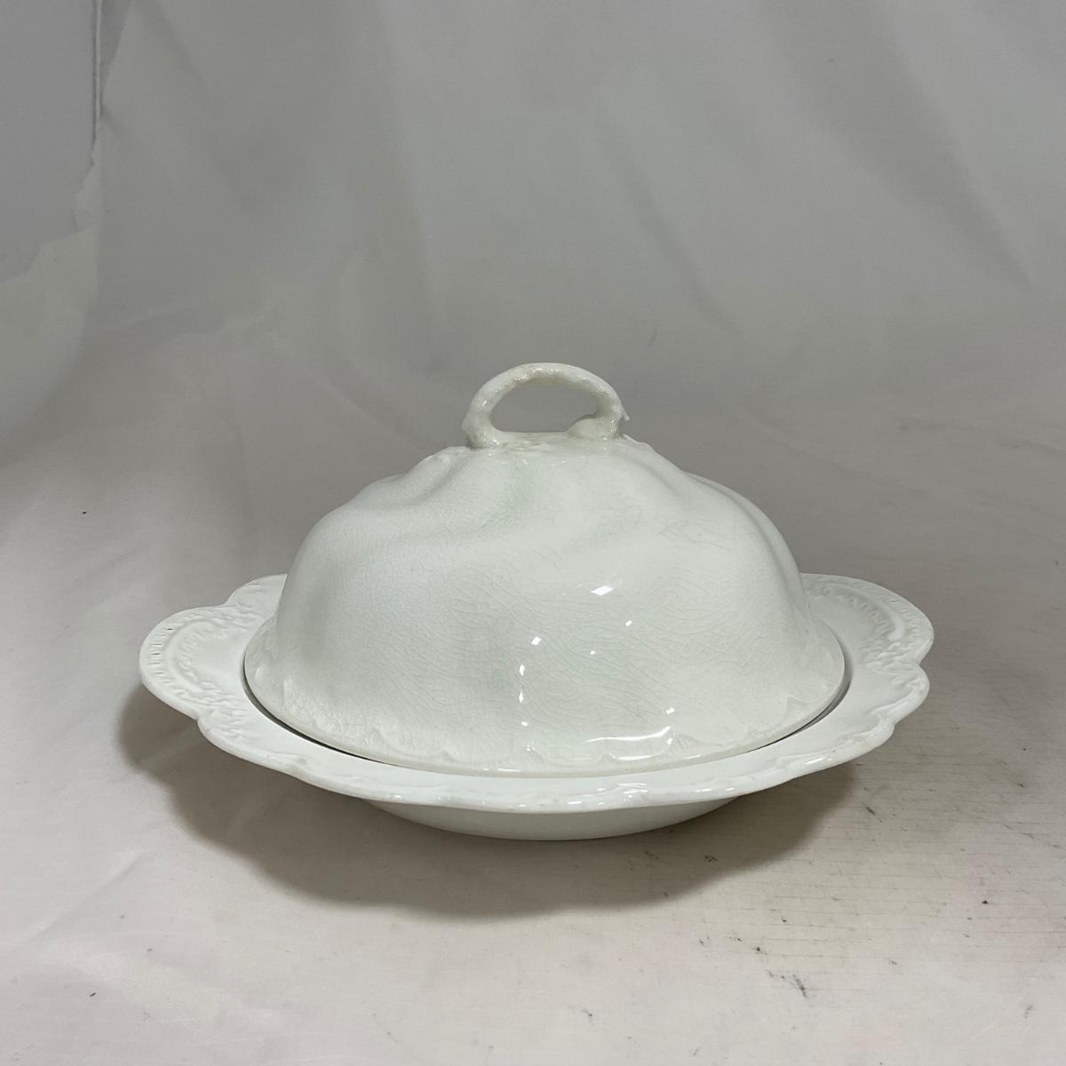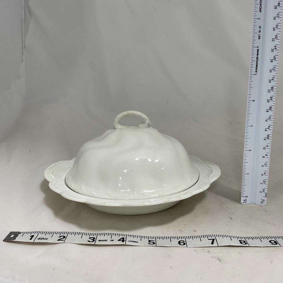 One classic colored white covered butter dish. Piece is marked Johnson Bros England. Please see photos for details and condition. ::: Shipping is available on this lot. If you require shipping you must let us know at the close of the auction. We will coordinate with you after the item has been won. Shipping fees will include insurance up to or exceeding the value of all items being mailed. If you have any questions regarding this lot please contact the auctioneer either via this website, by direct email or by phone. PICK UP TIMES and other important information can be found in the TERMS and DESCRIPTION of the auction. Please take a look for pertinent information. Thanks!