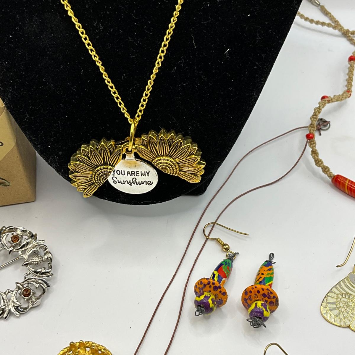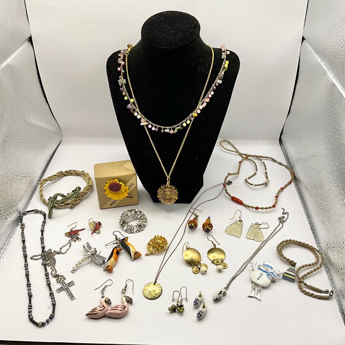 Laurel Burch Cat Earrings, Pierced earrings, pins, sunflower necklace and more