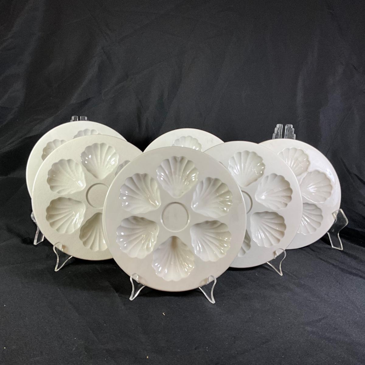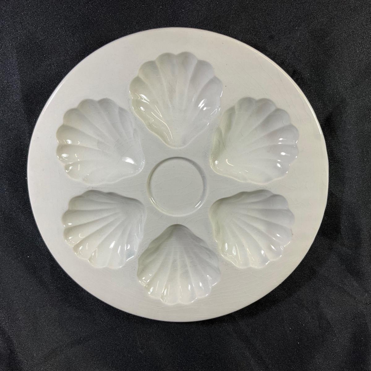 1280 Set of 6 Mid Century French GIEN Oyster / Clam Plates