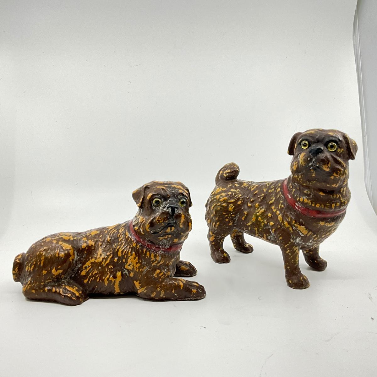 1283 Pair of Antique Terracotta Dog Figures with Glass Eyes