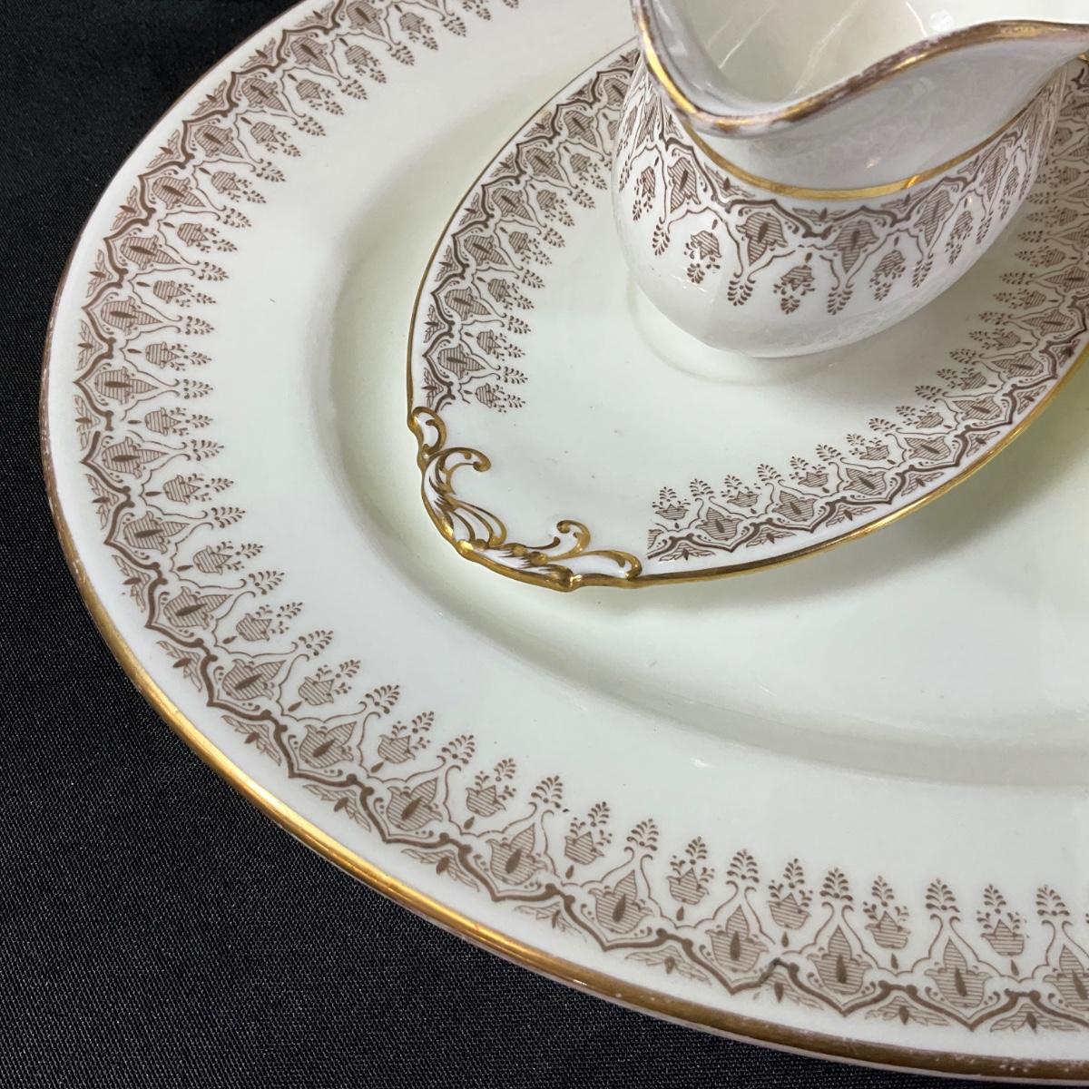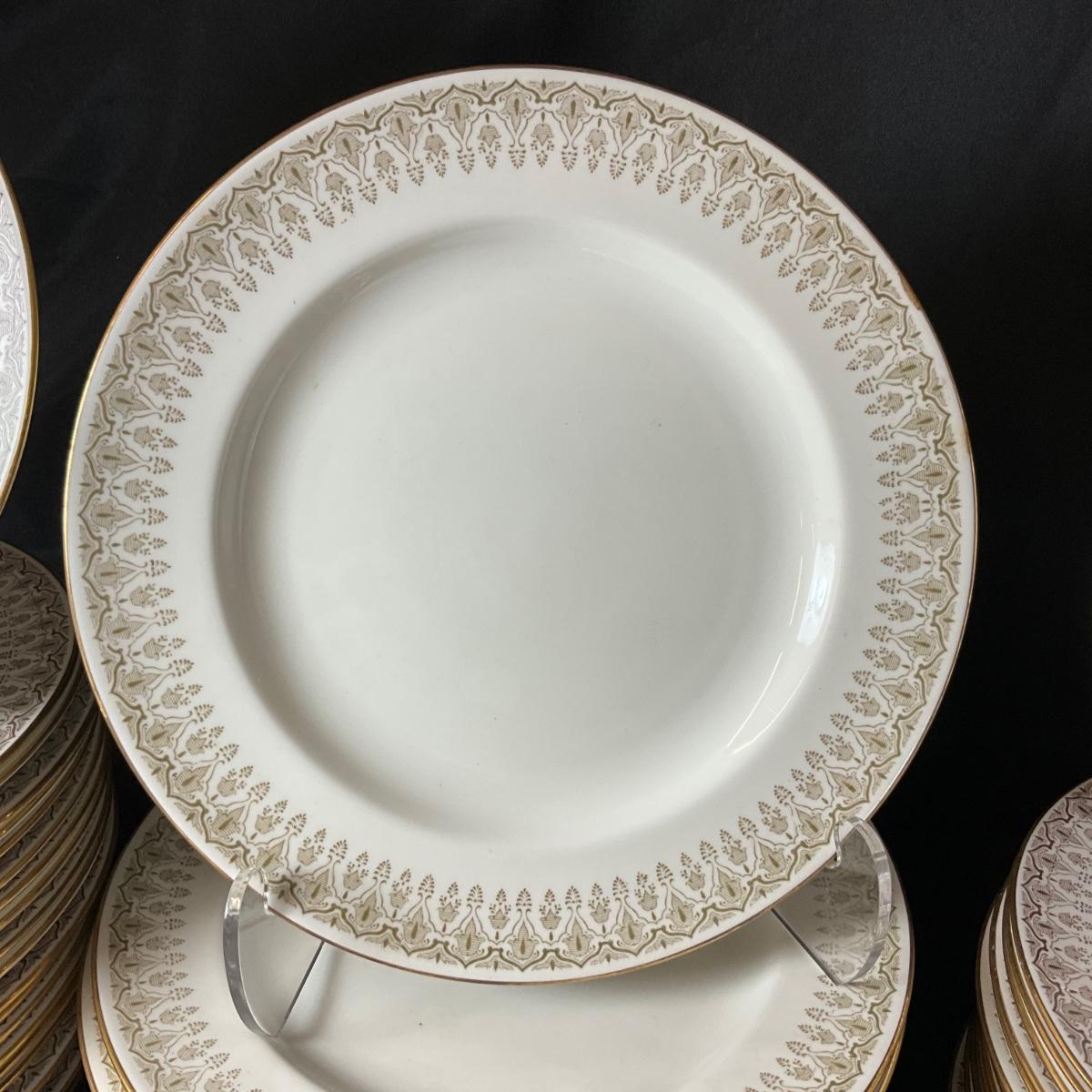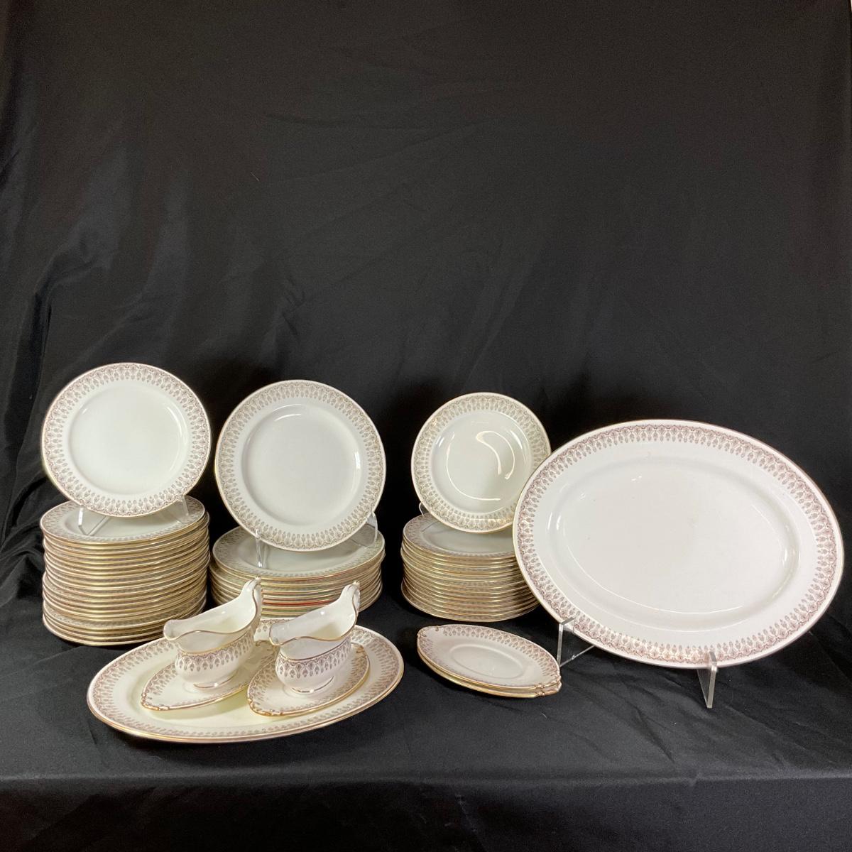 36 salad plated, 10 dinner, 2 oval platters, 2 gravy sauce boats with underplate, 2 extra underplates