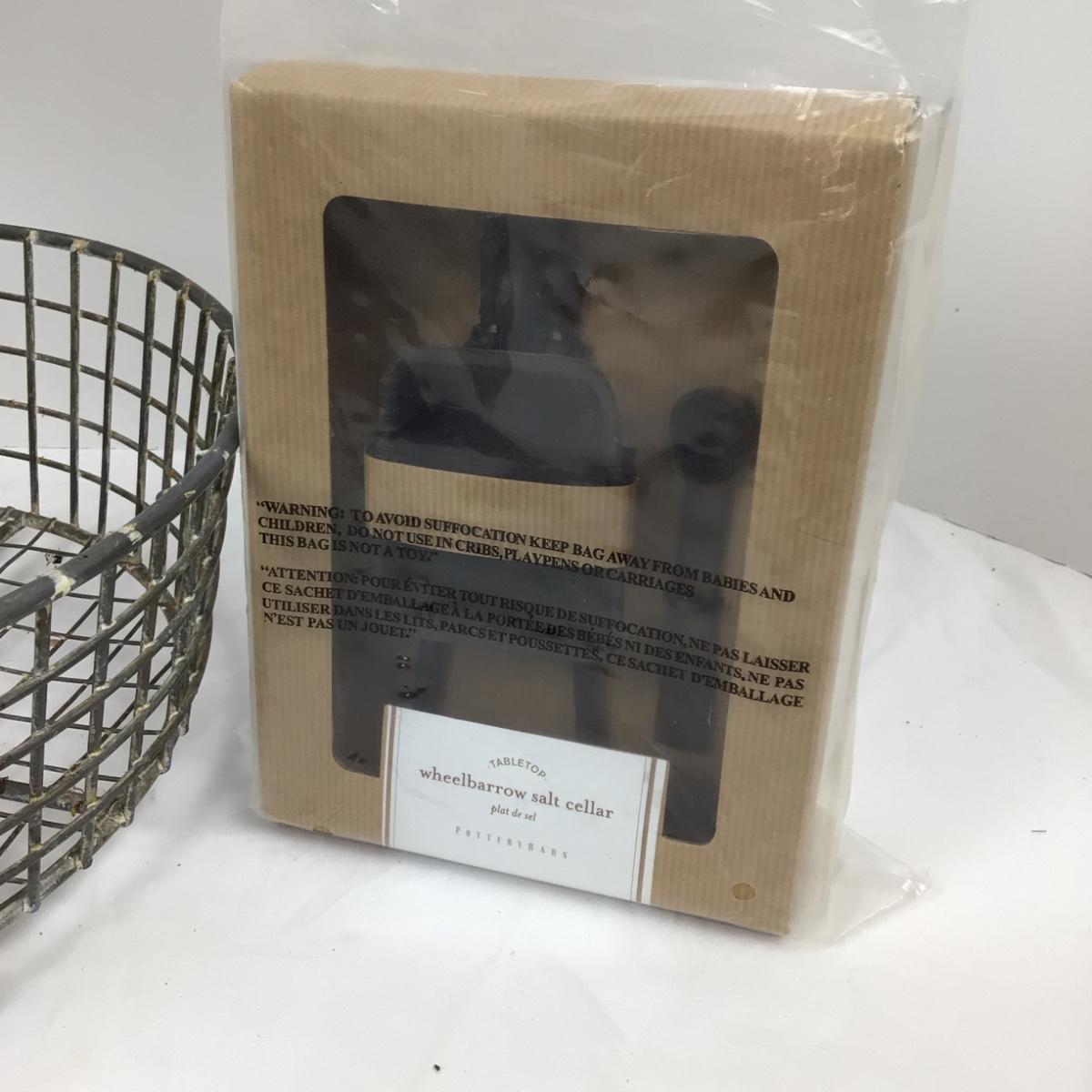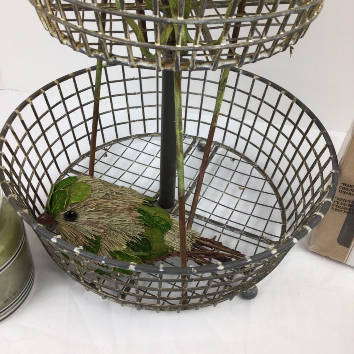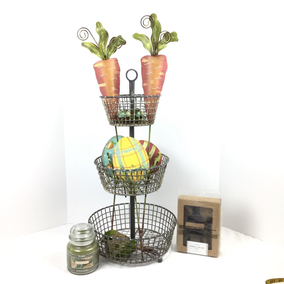 1286 Three Tier Wire Shelf with Spring Decor , Yankee Candle , Pottery Barn Salt Cellar