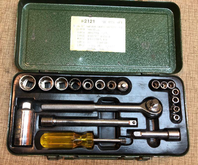 #1287 G 21 Piece Socket set in metal case - SAE Sockets