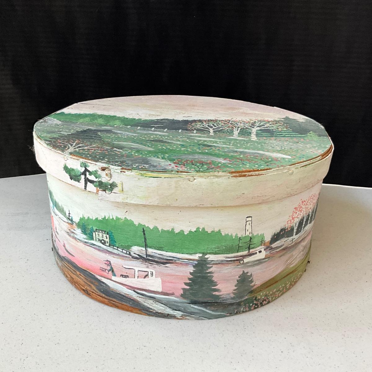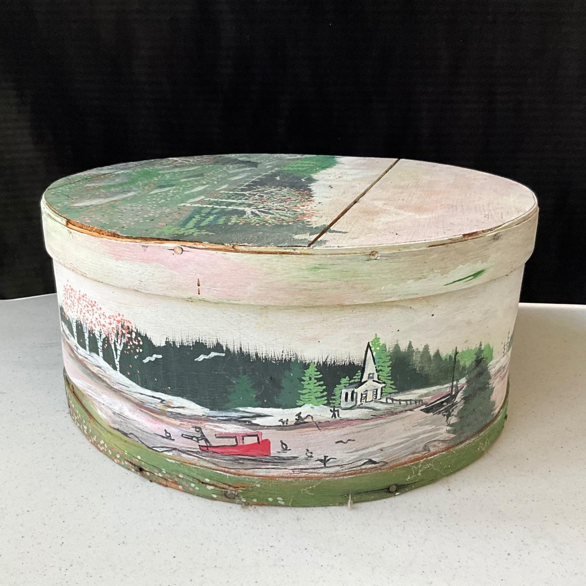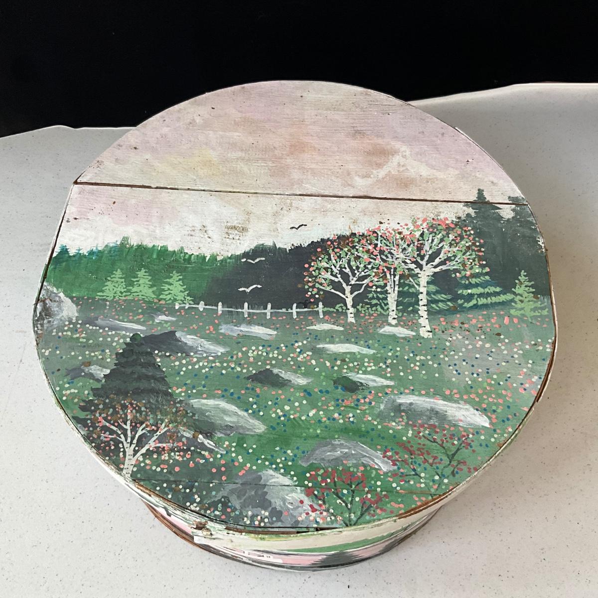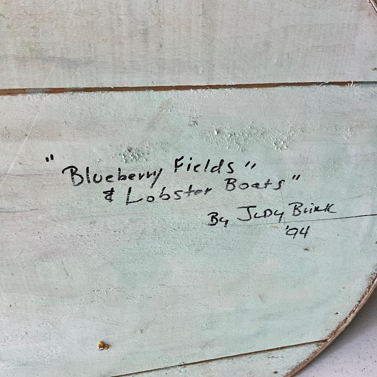 1288 Large Handpainted Cheese Box by Judy Blink 1994 " Blueberry Fields & Lobster Boats"