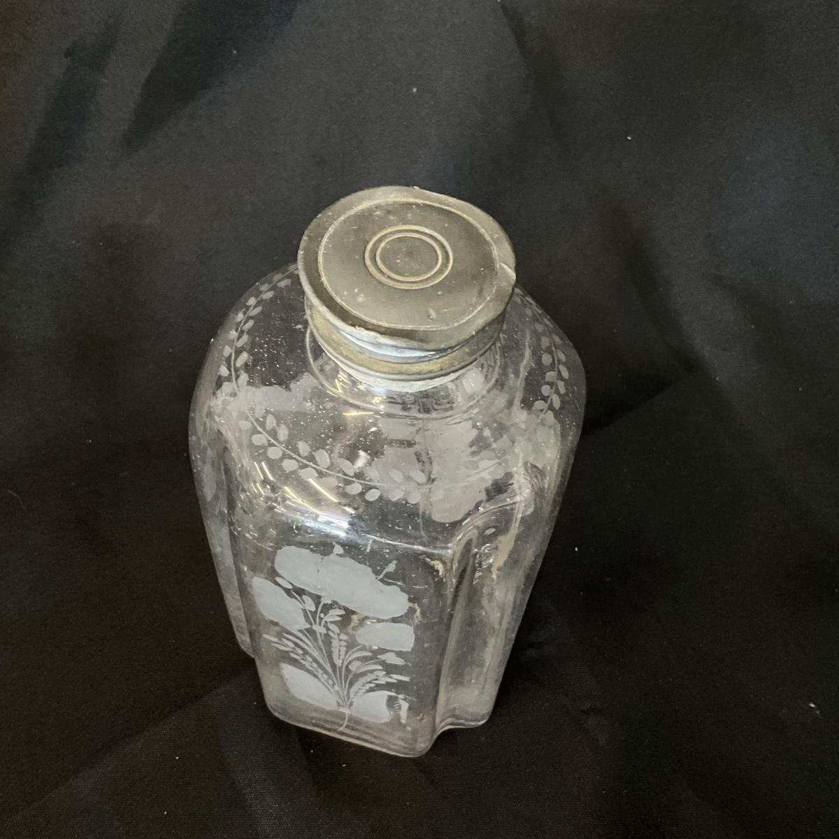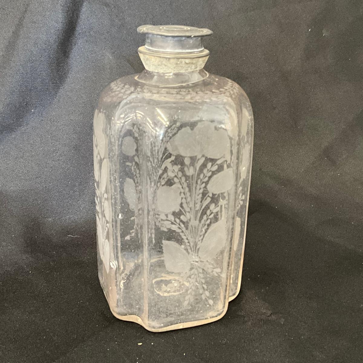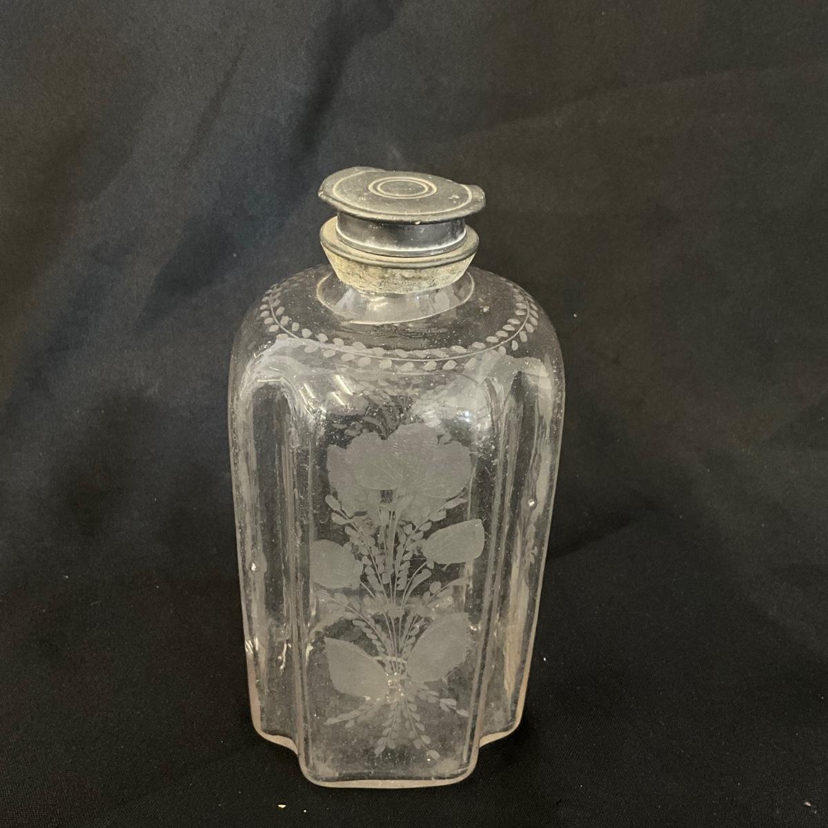 Beautiful Etched Glass Vanity? Or Vinegar bottle, with pewter top