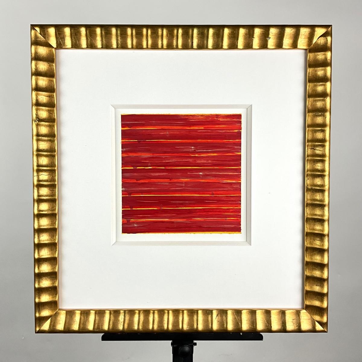 Original hand-painted abstract artwork featuring layered red horizontal brushstrokes with subtle yellow undertones