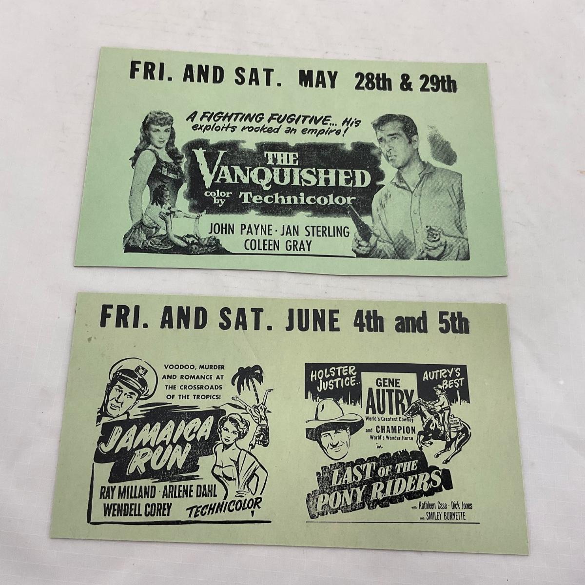 Eight 1953 advertisement movie cards. Very good shape. Please see photos for details and condition. ::: Shipping is available on this lot. If you require shipping you must let us know at the close of the auction. We will coordinate with you after the item has been won. Shipping fees will include insurance up to or exceeding the value of all items being mailed. If you have any questions regarding this lot please contact the auctioneer either via this website, by direct email or by phone. PICK UP TIMES and other important information can be found in the TERMS and DESCRIPTION of the auction. Please take a look for pertinent information. Thanks!