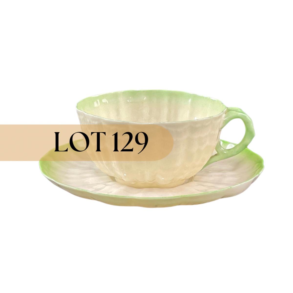 -129- BELLEEK | Teacup & Saucer | Tridacna Shell green Pattern | 2nd Mark