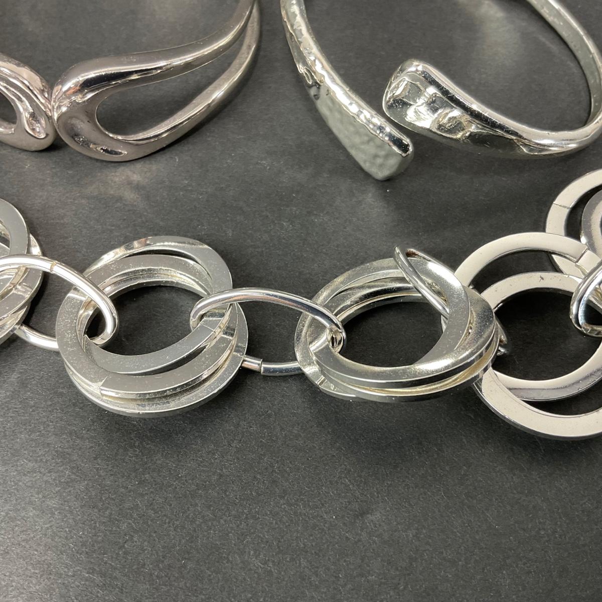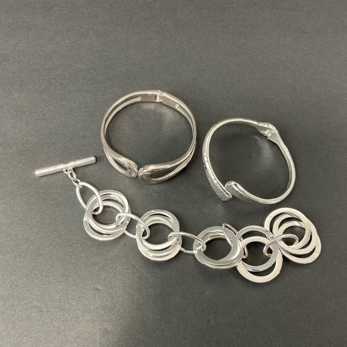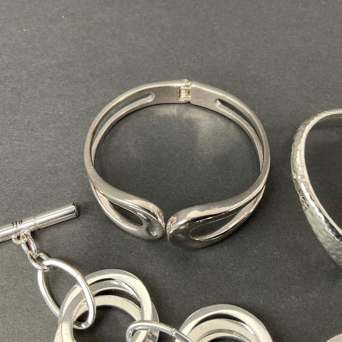 Three costume jewelry bracelets. One appears to be a Ralph Lauren marked bracelet. One is unmarked and one is possible Liz Claborne. Please see photos for details and condition. Any condition statement is given as a courtesy to a client, is an opinion, and should not be treated as a statement of fact. Reference to condition written, oral or within a condition report shall not be regarded as a full account of condition and may not include all defects, alterations, or restorations. Absence of a condition report does not imply a lot is flawless or lacking imperfections or damage. Katherine’s Auction & Appraisal Service shall have no responsibility for any error or omission. Returns shall not be accepted on the basis of condition. ::: Shipping is available on this lot. If you require shipping you must let us know at the close of the auction. We will coordinate with you after the item has been won. Shipping fees will include insurance up to or exceeding the value of all items being mailed. If you have any questions regarding this lot please contact the auctioneer either via this website, by direct email or by phone. PICK UP TIMES and other important information can be found in the TERMS and DESCRIPTION of the auction. Please take a look for pertinent information. Thanks!