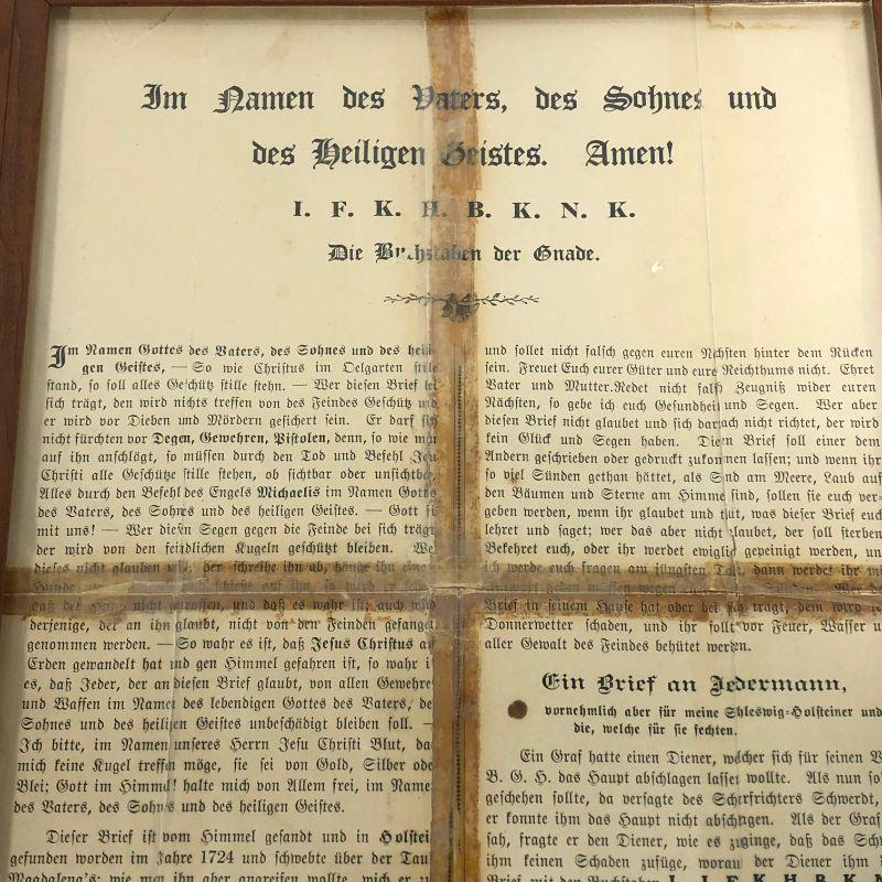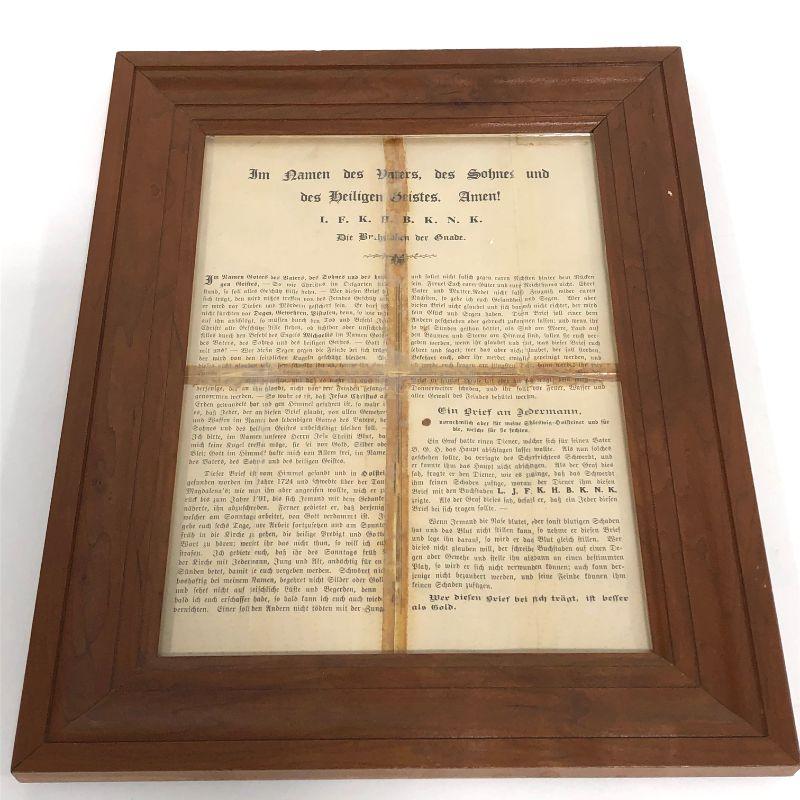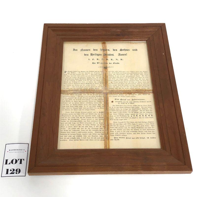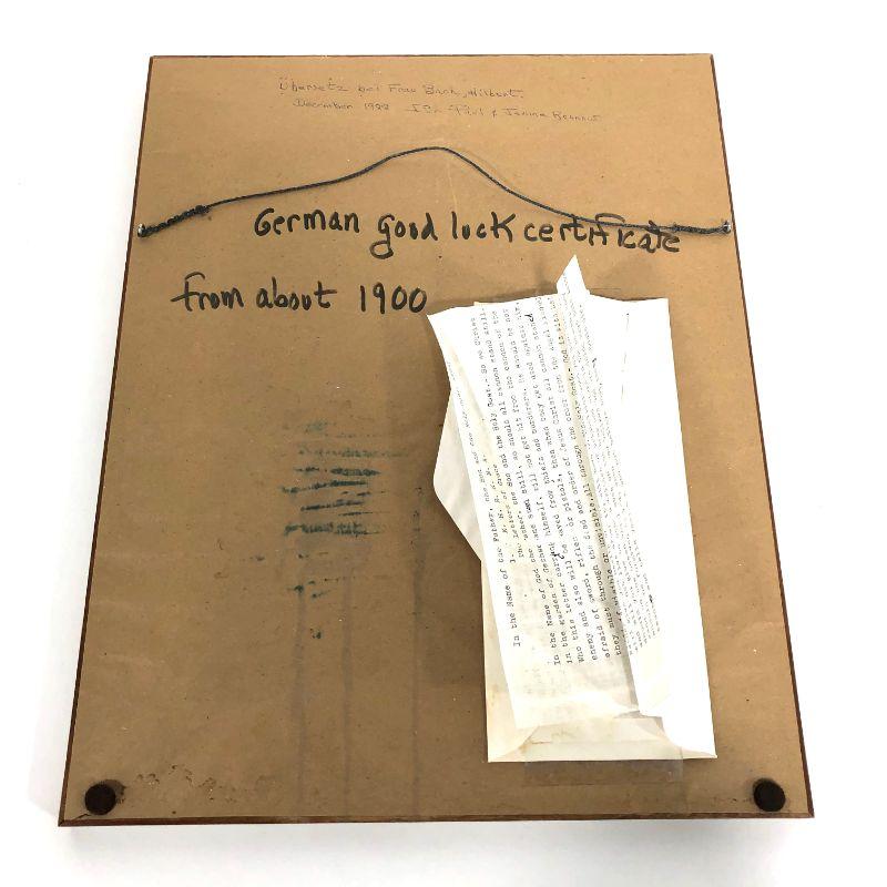 Framed German Good Luck Certificate. Condition & Rarity noted. Circa 1900, Includes translation. Glass is loose, could use re-framing. Frame measures 17.5" x 13.75"