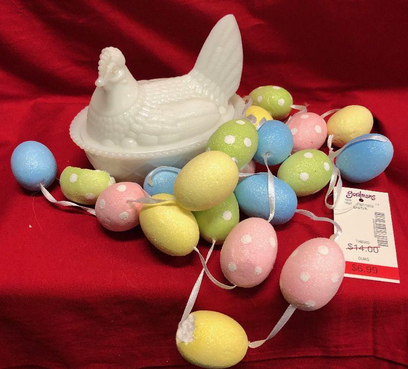 #129 Last of the Chickens with some eggs on a string (Styrofoam )