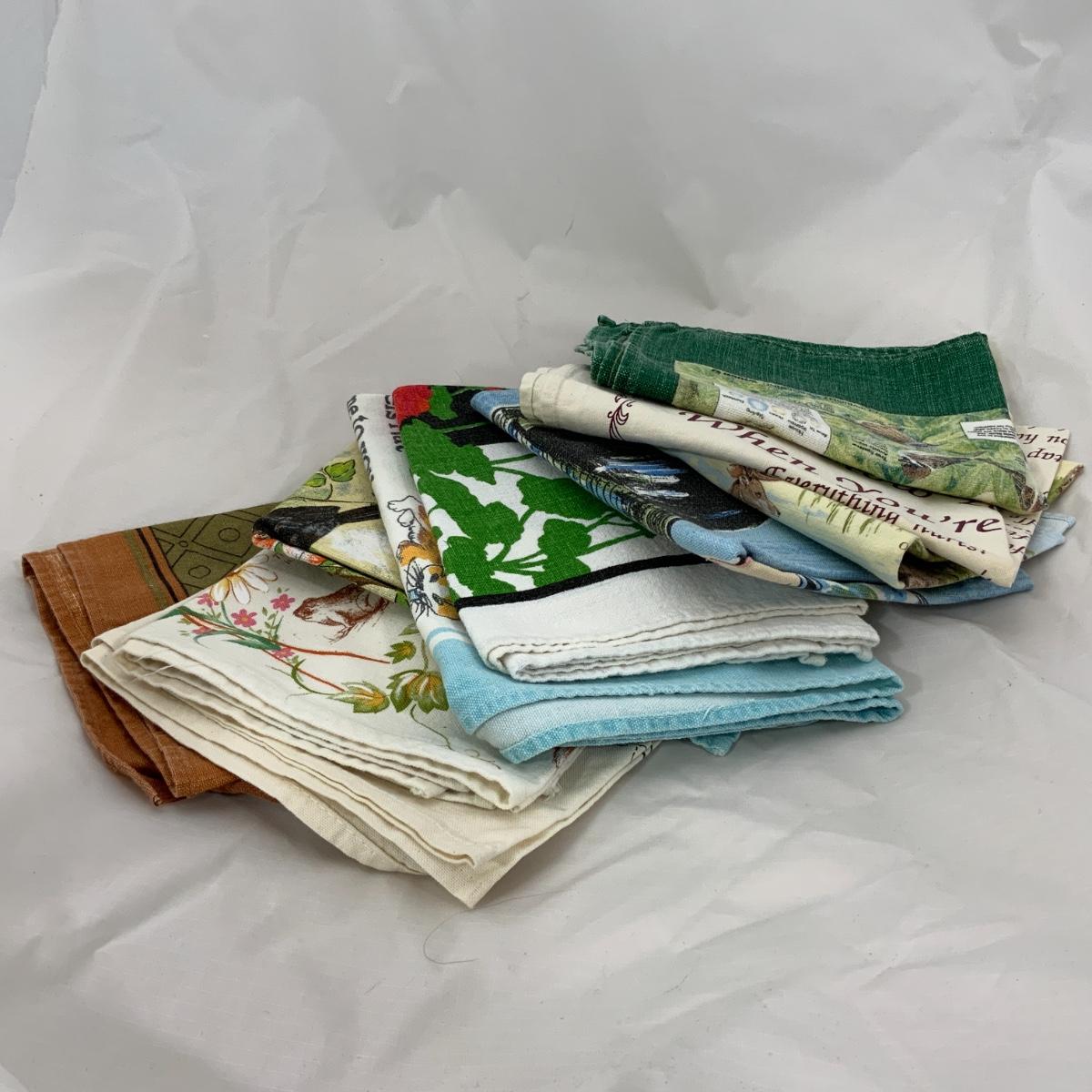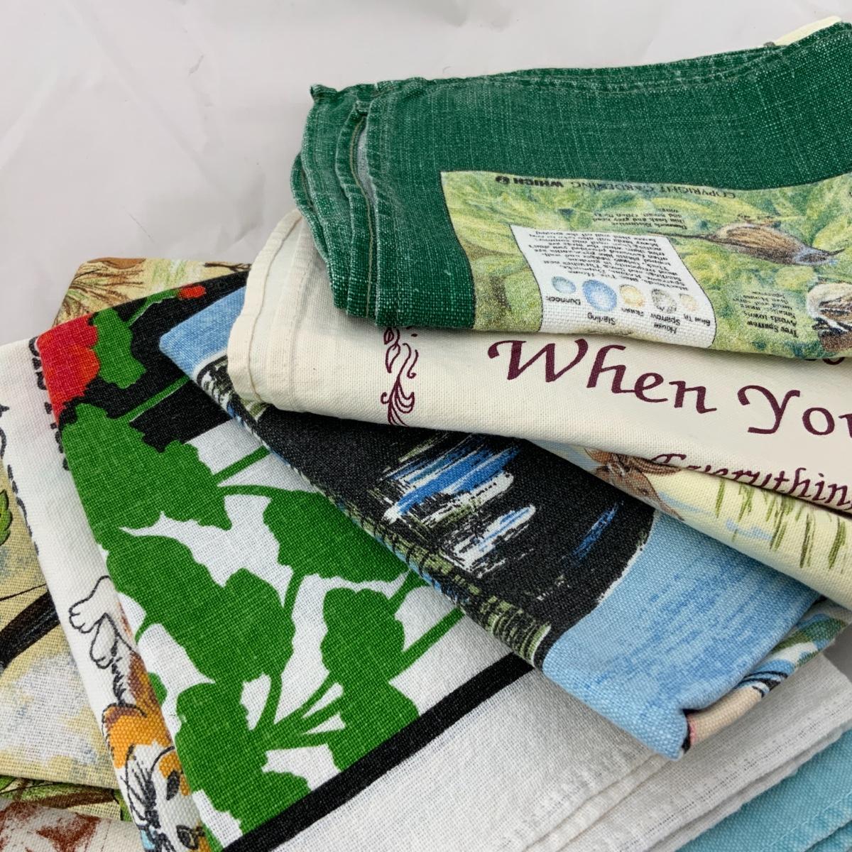 From the Estate of Peter and Alice Radovanovich: Ten printed Vintage Tea Towels. Something for most occasions. Please see photos for details and condition. ::: Shipping is NOT available on this lot. If you have any questions regarding this lot please contact the auctioneer either via this website, by direct email or by phone. PICK UP TIMES and other important information can be found in the TERMS and DESCRIPTION of the auction. Please take a look for pertinent information. Thanks!