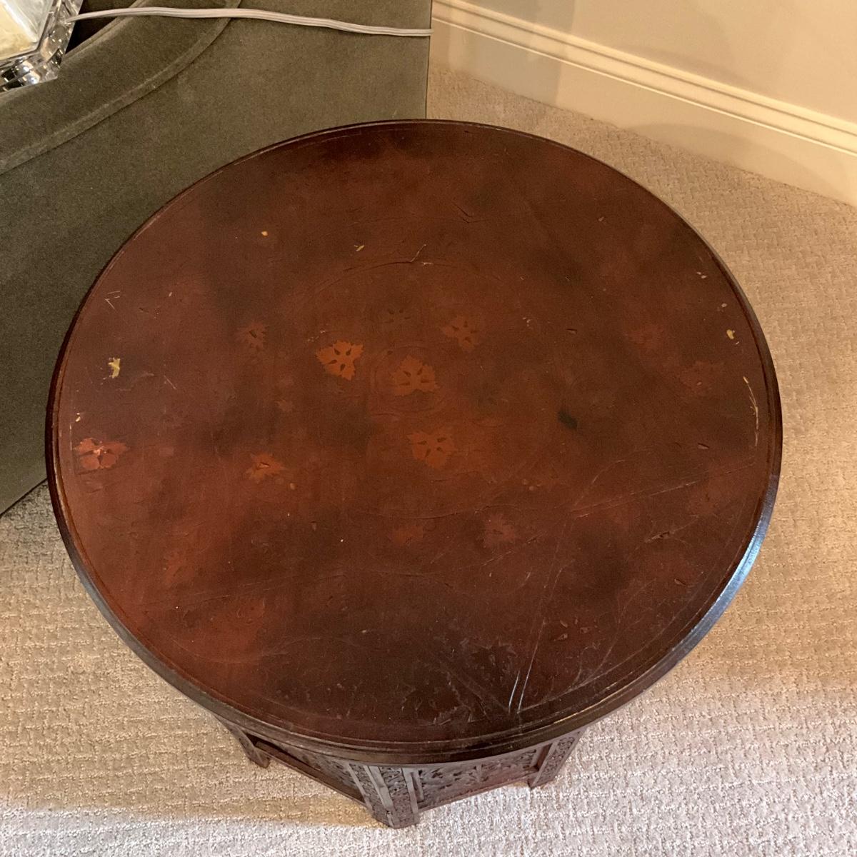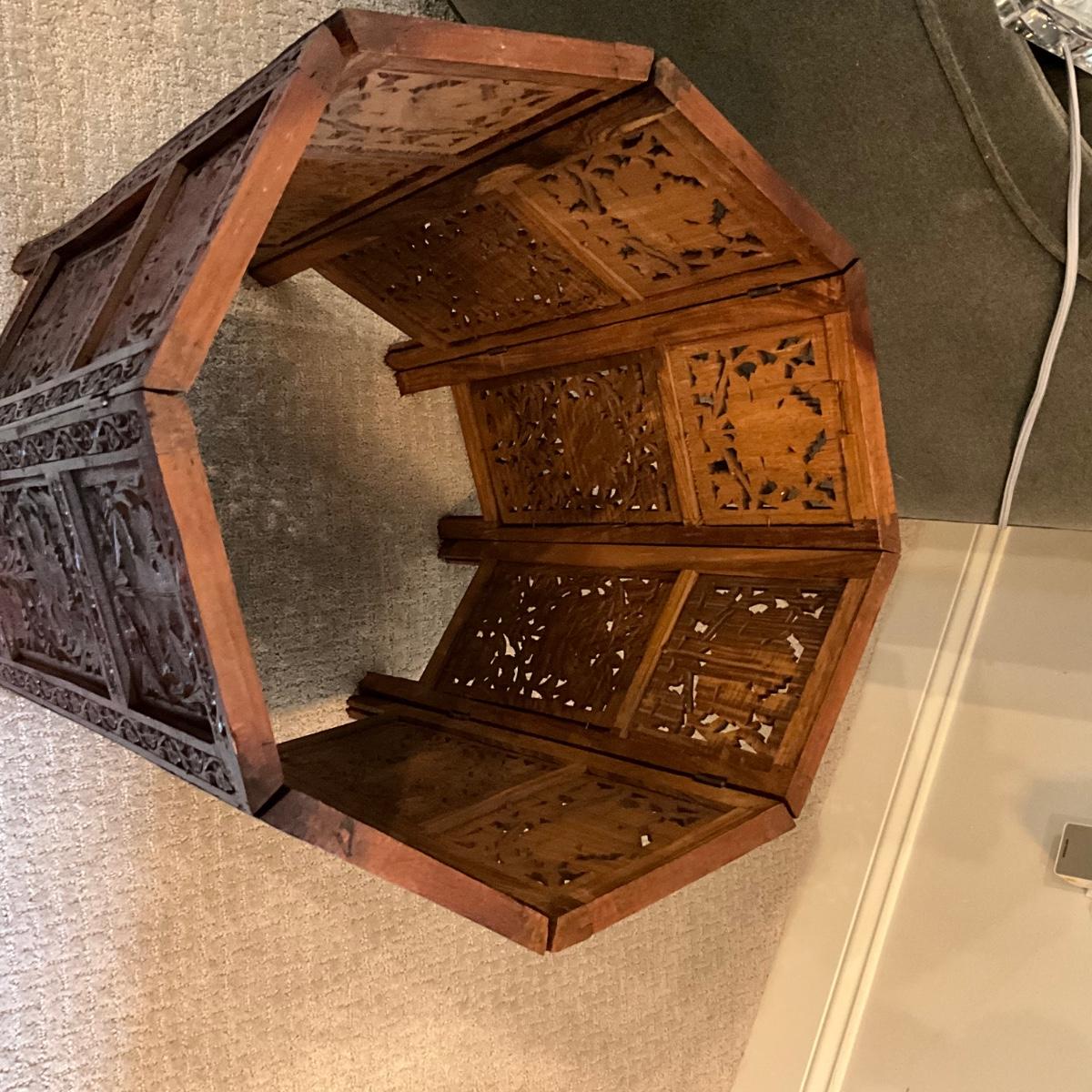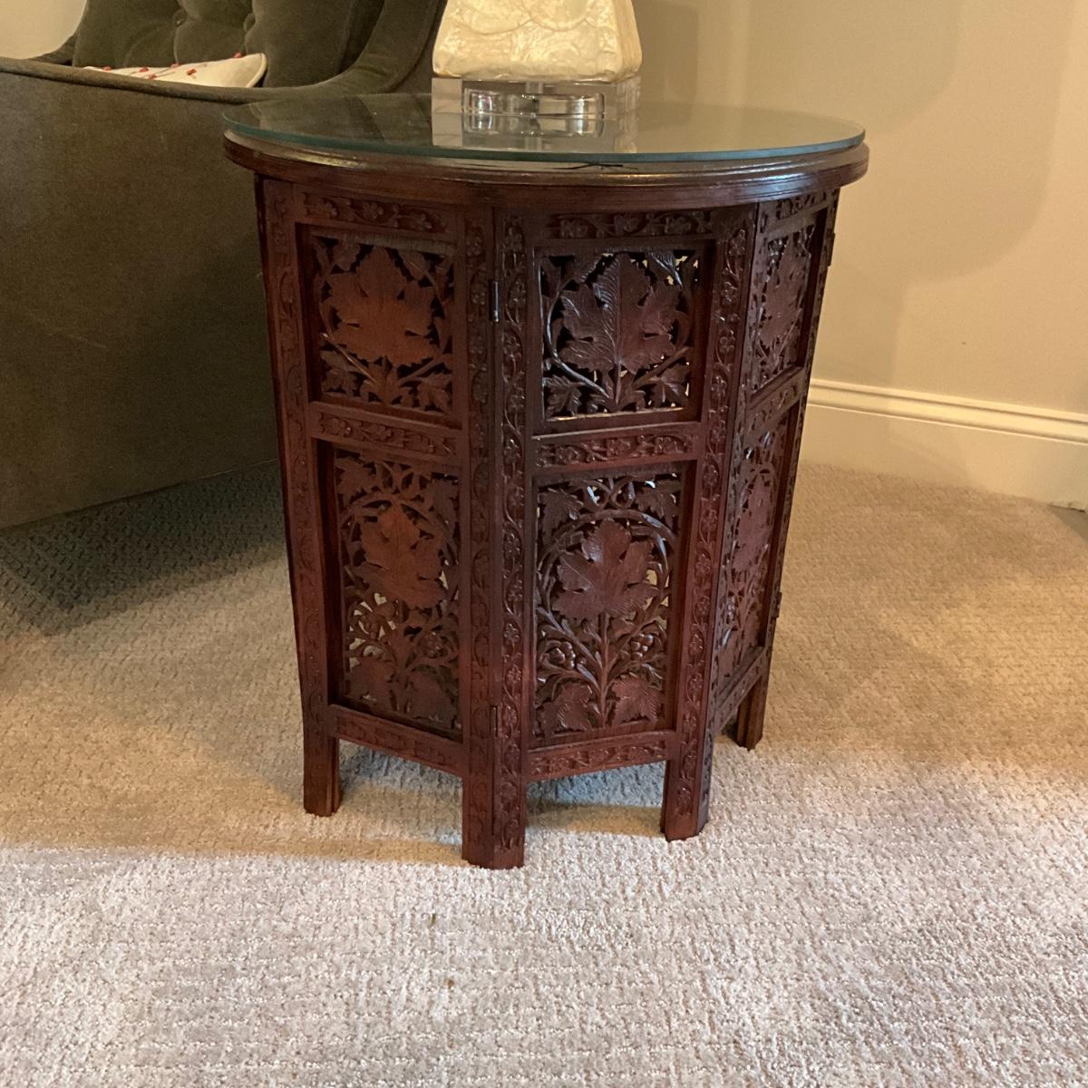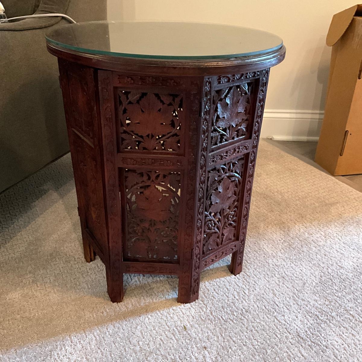 129 Vintage Hand Carved Rosewood Indian Glass top Octagon Collapsible Table