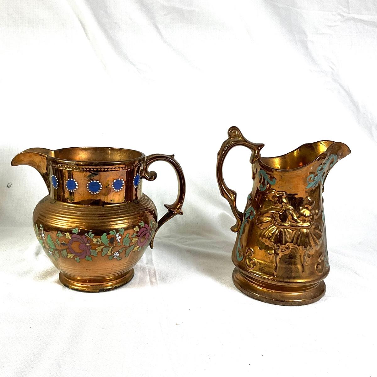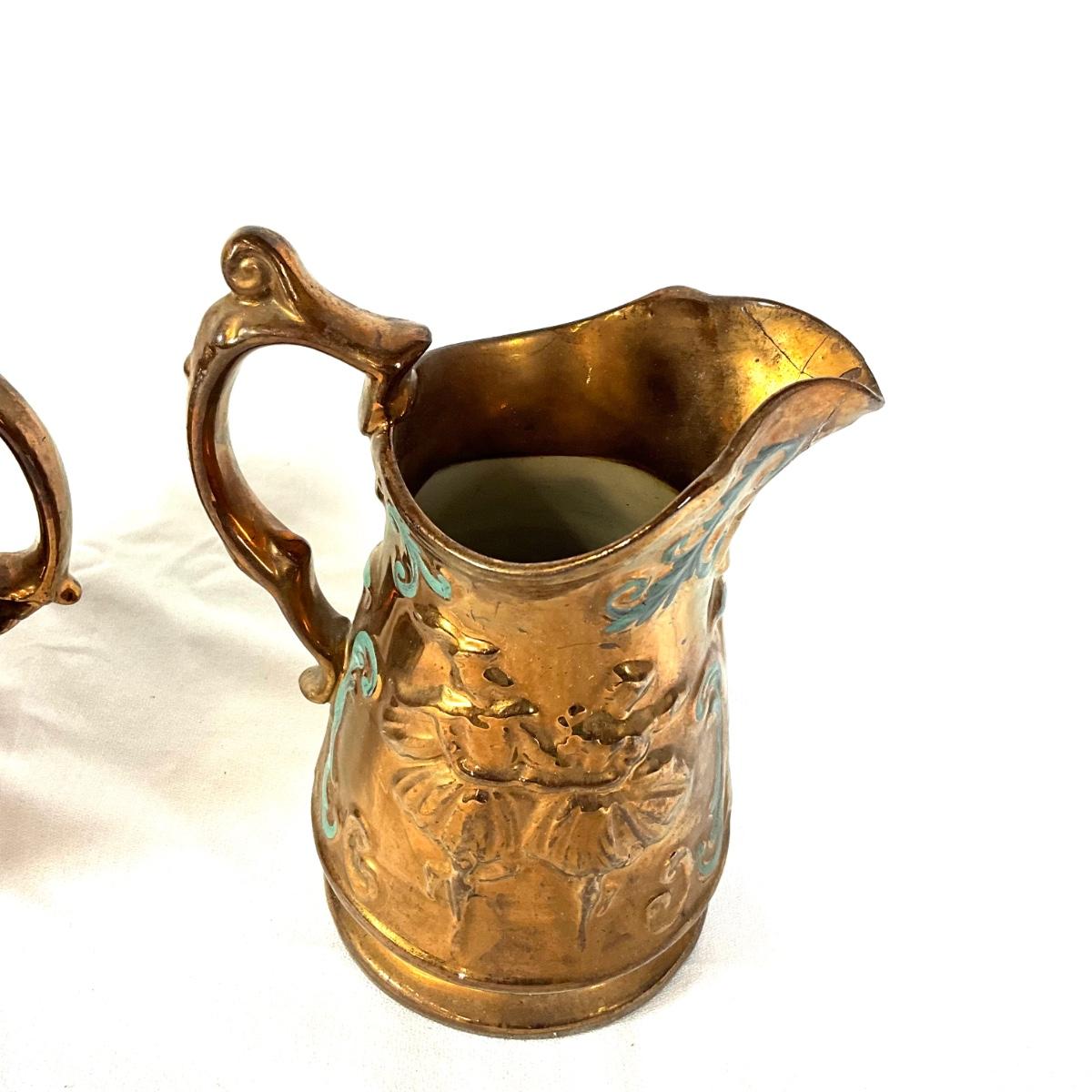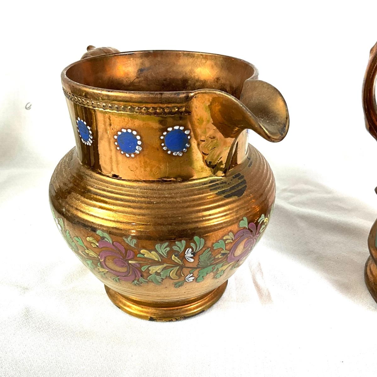 Pitcher on the right hand side measures 6" from spout to handle and 8" high