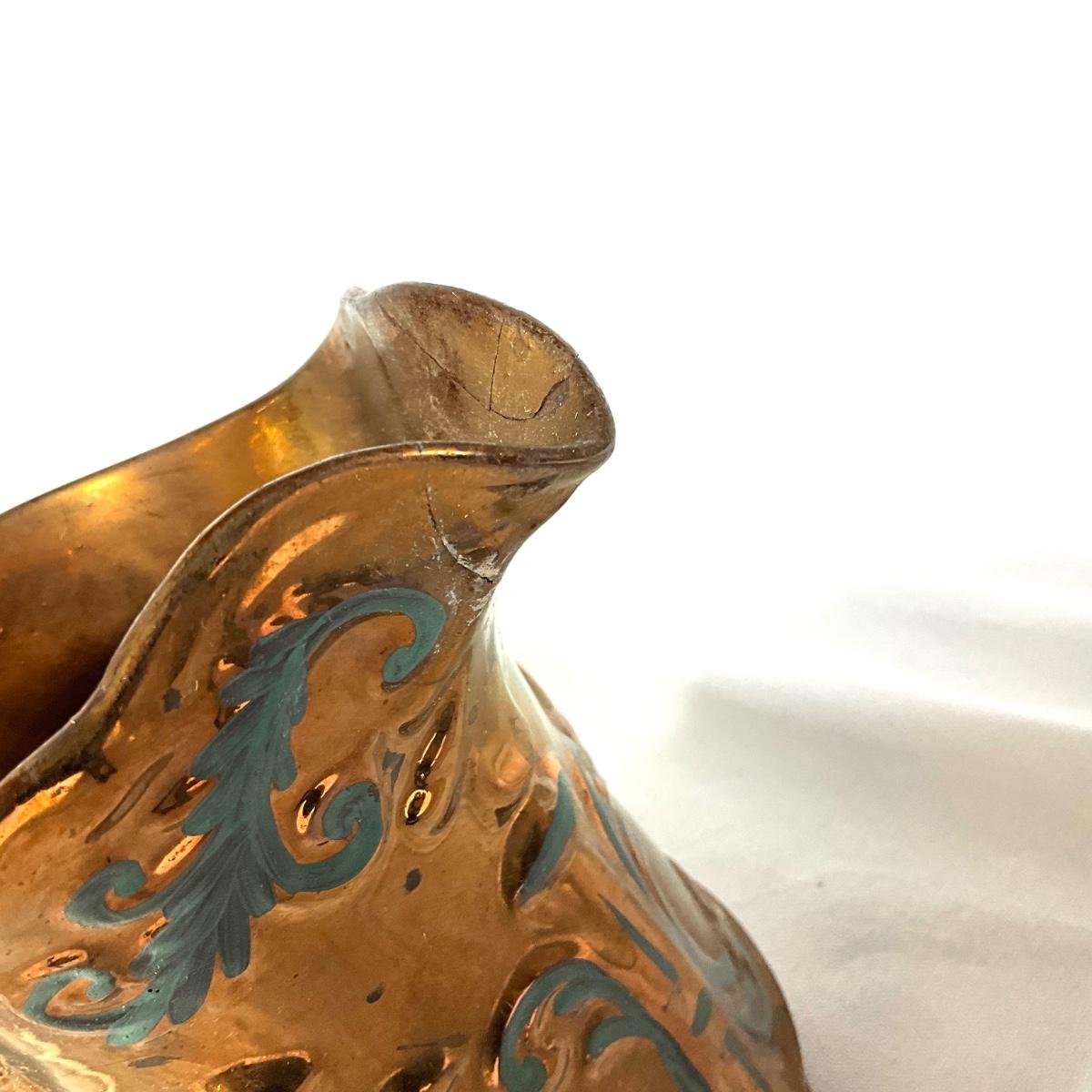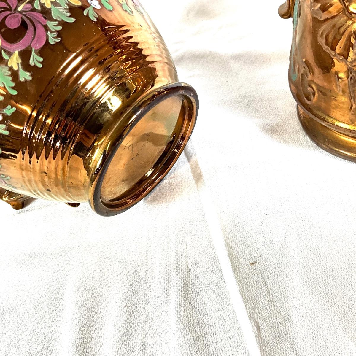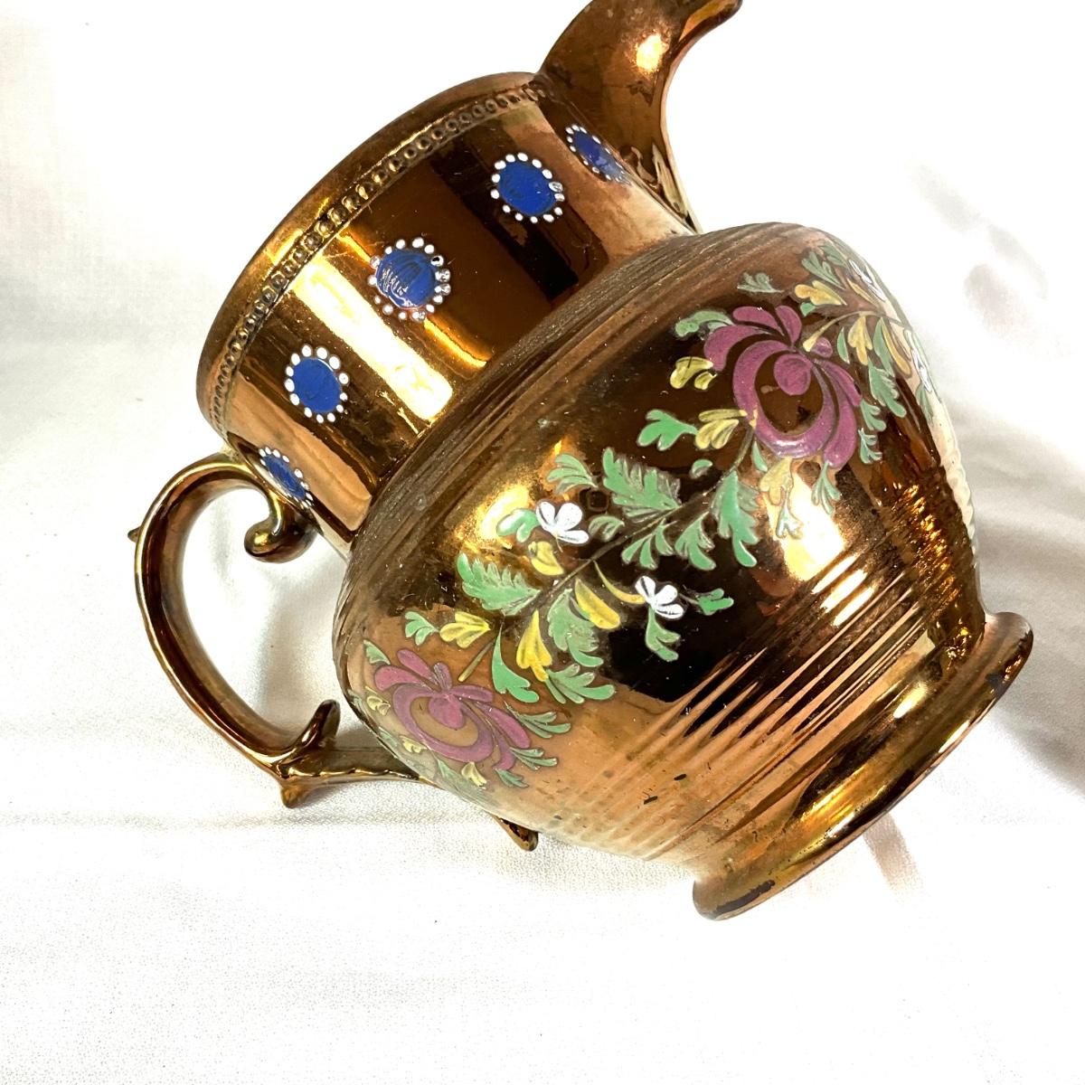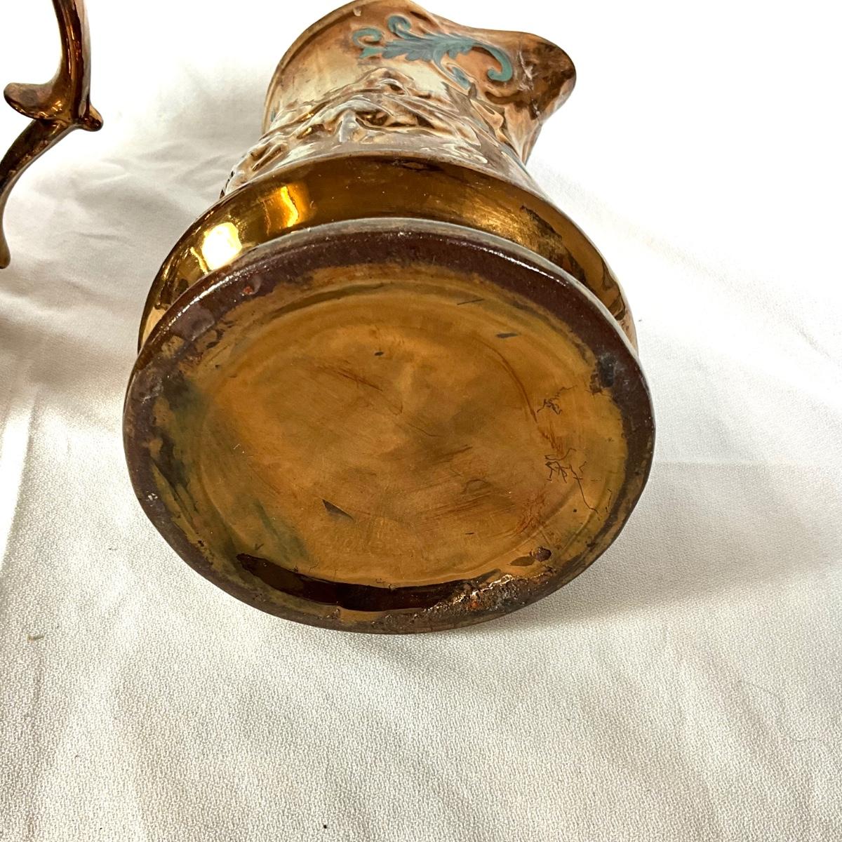 Pitcher on the right hand side measures 6" from spout to handle and 8" high