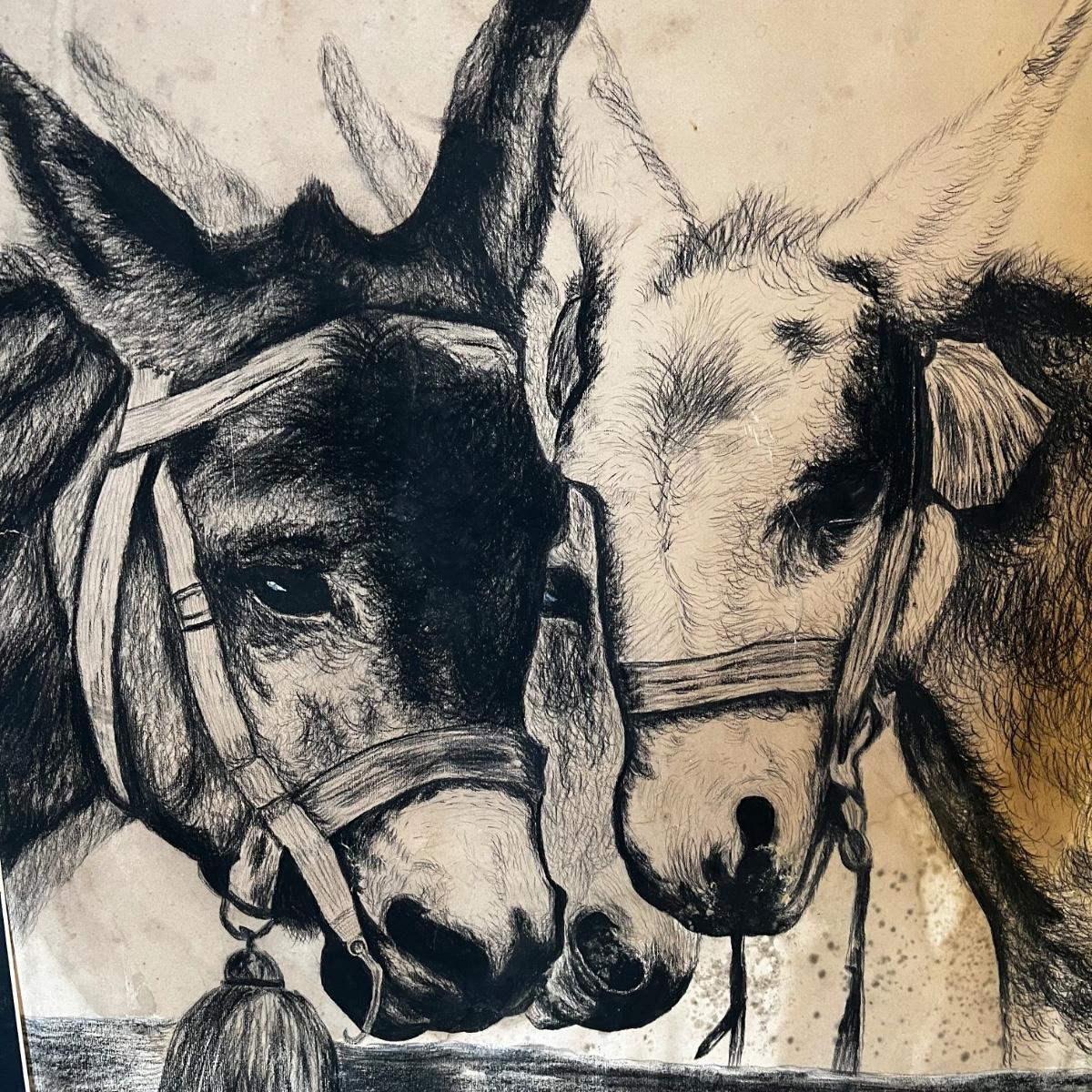 Framed charcoal. Artwork has foxing. Do not see signature of artist.