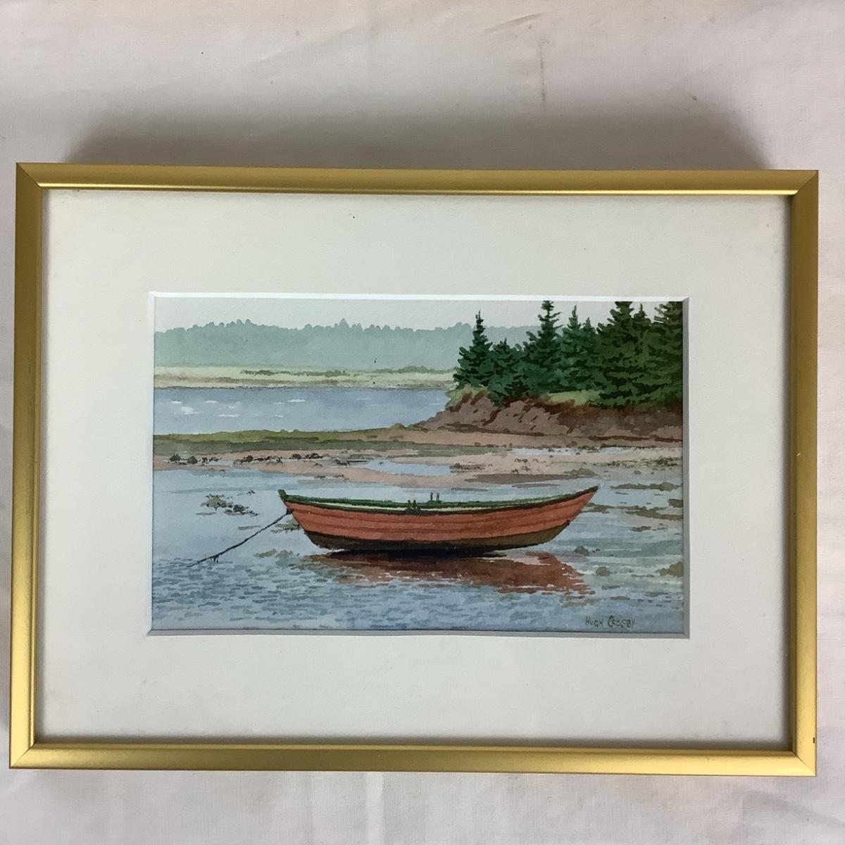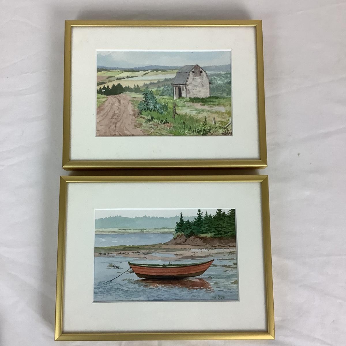 Pair of Original Watercolors by Hugh Crosby titles "An Island Barn, Pei" & "Dory" Both measuring 8.25"wide x 6.25"tall