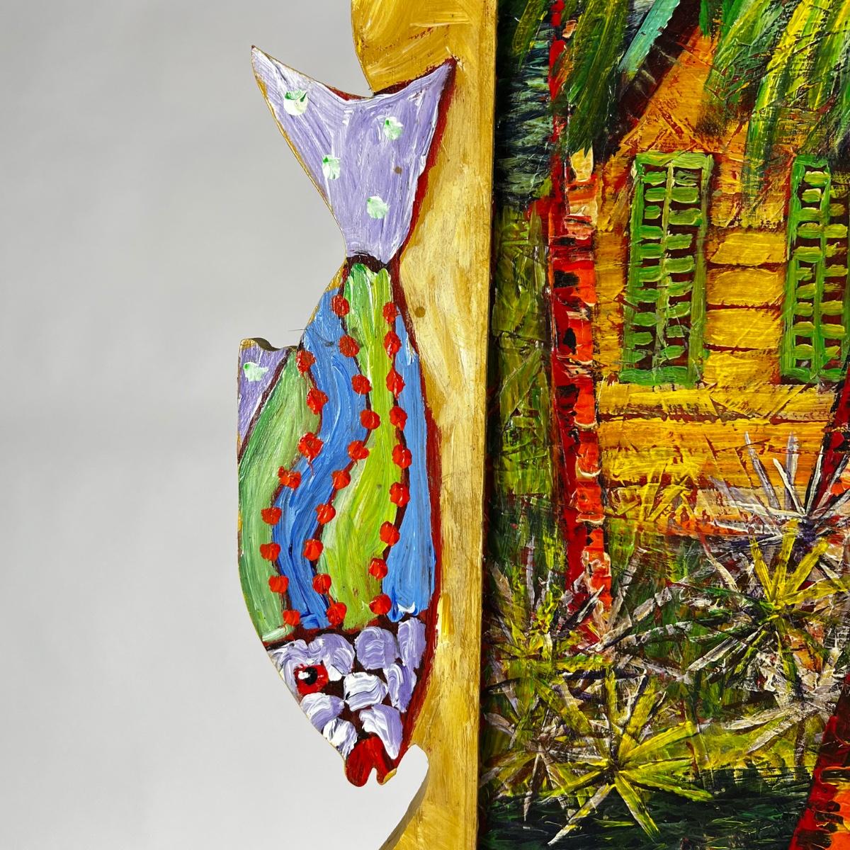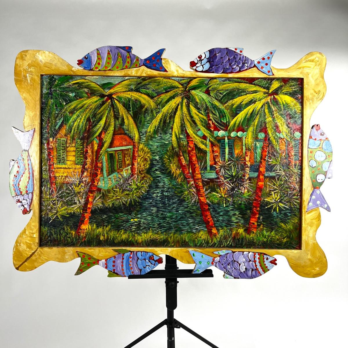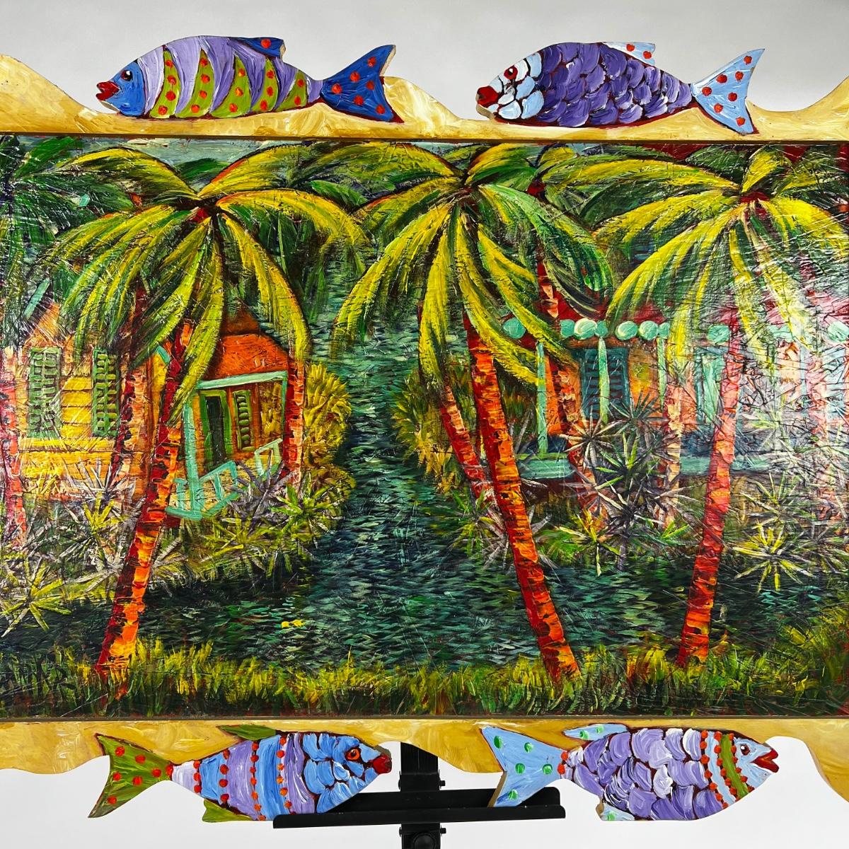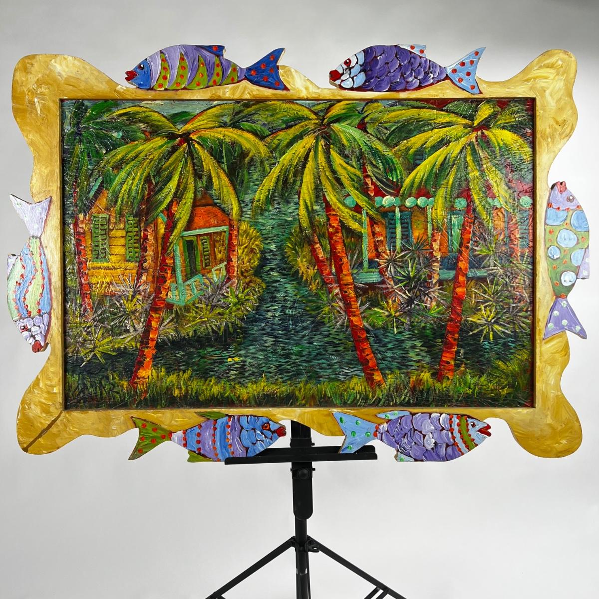 Original Oil on Plywood “Bonefish Bayou” 2004 by Dan Sawyer. One of a kind fish painted frame.