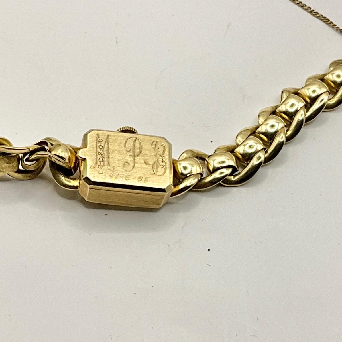 Measuring 6.5" , self winding ladies watch, stamped on clasp, with safety chain weighing 34.1grams