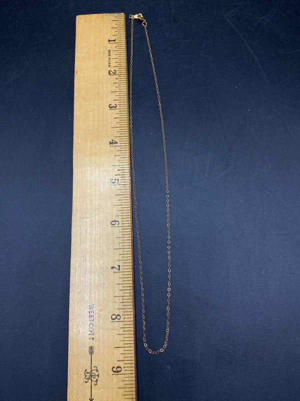 12k yellow gold necklace. Dainty open link chain. .73g tw. Measures about 8.5"