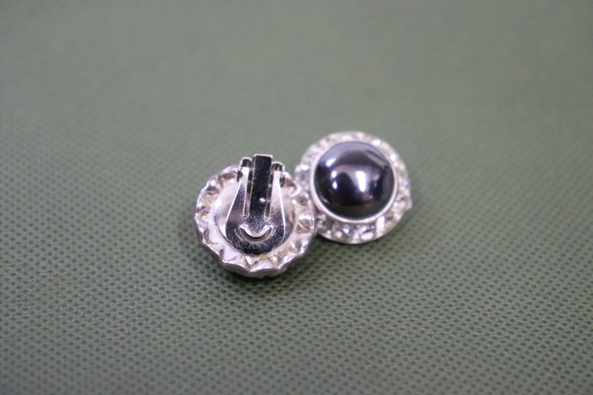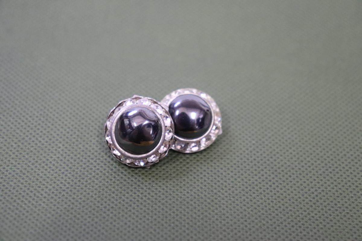 12mm Black Pearl and Silver Rhinestone Stud Earrings, Black Pearl Halo Crystal Studs, Bridal Earrings, Wedding Pearl Studs