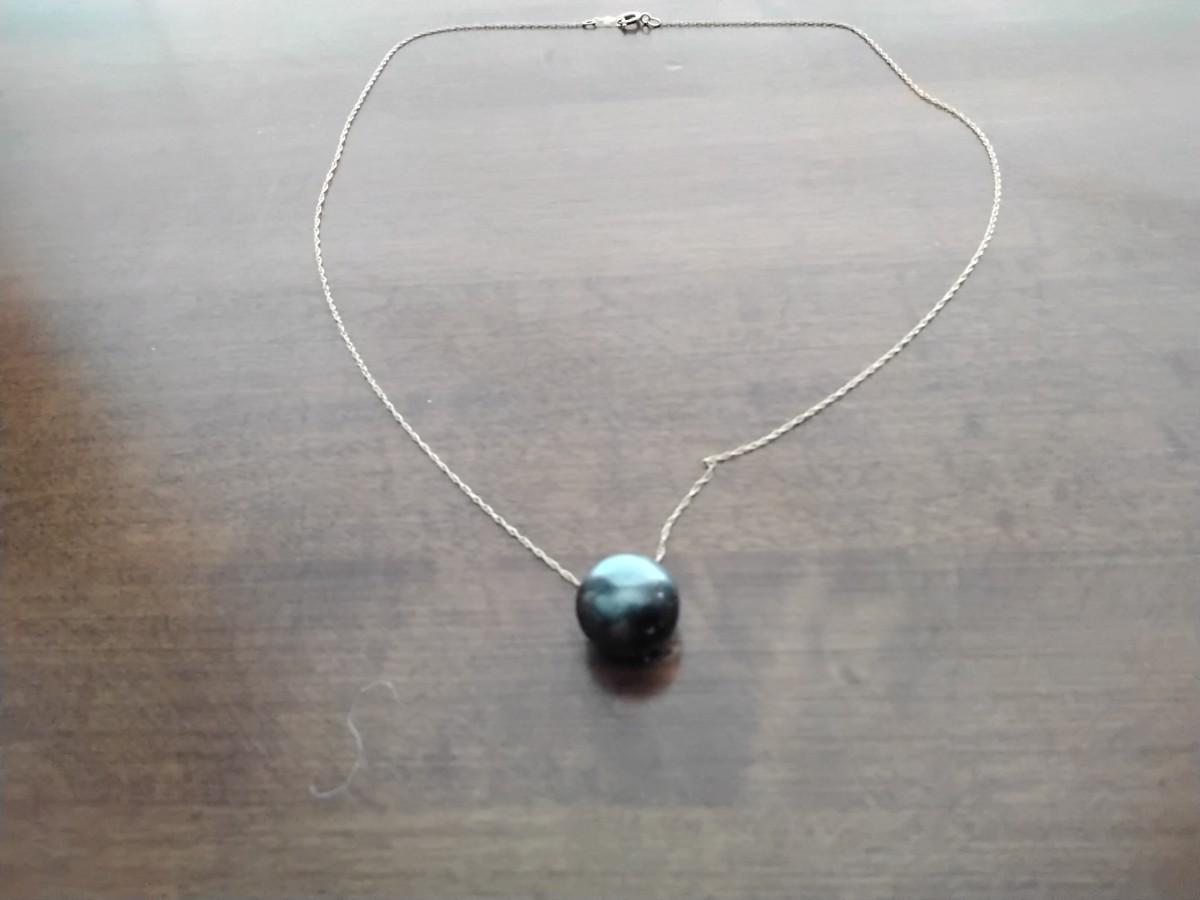 Gorgeous bold beautiful tahitian with a stunning sheen. 18k. bale on the tahitian with a solid 14k gold chain,
