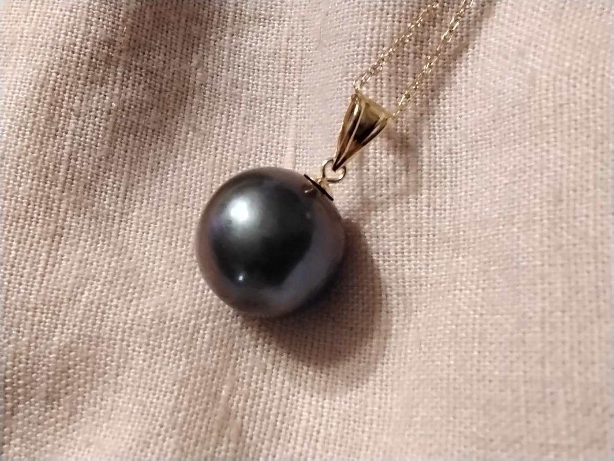 12mm Tahitian pearl on 18k bale with 14k necklace