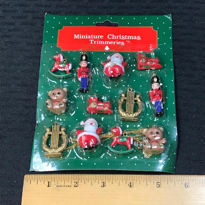 A 12 pack of miniature holiday ornaments still sealed; see pictures.