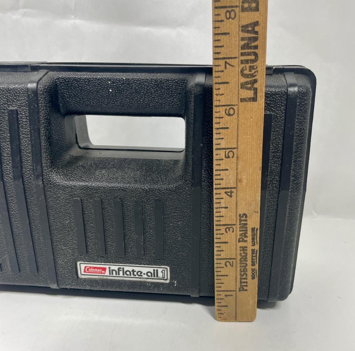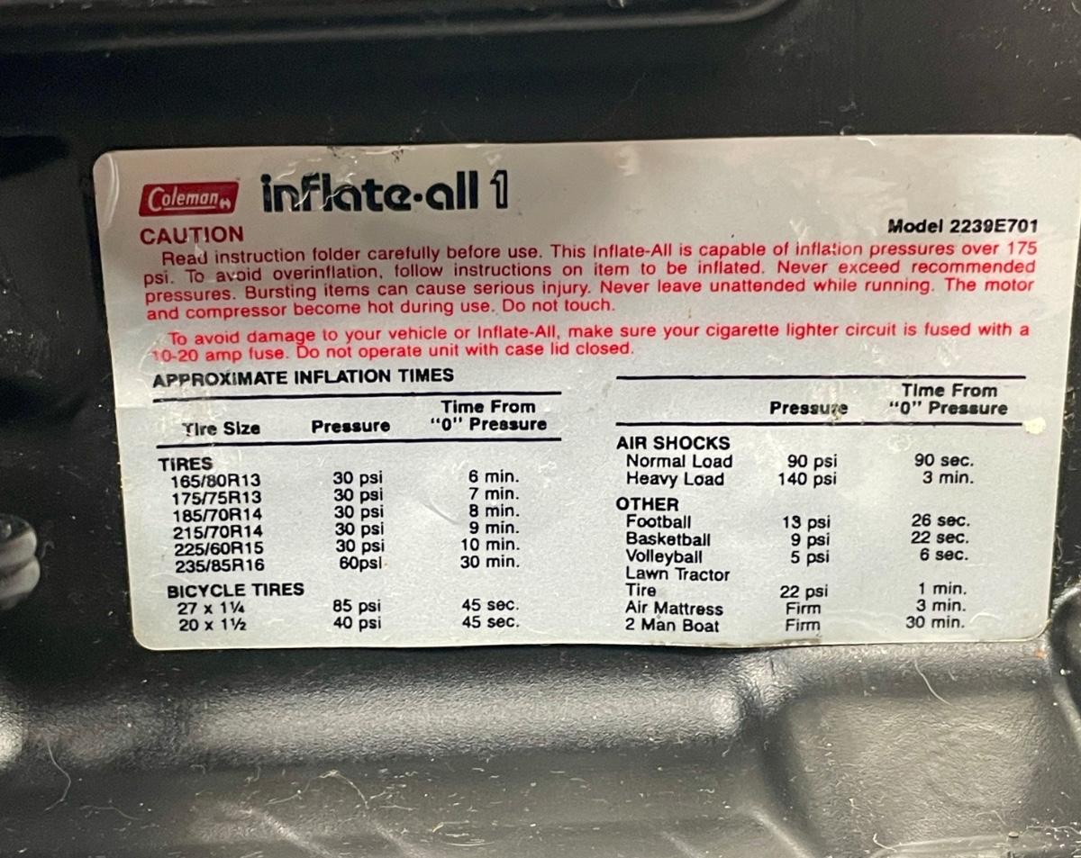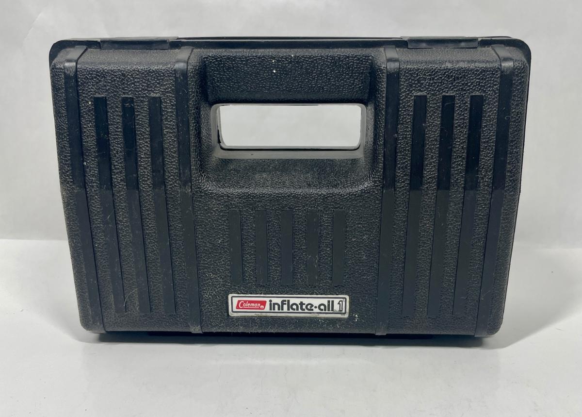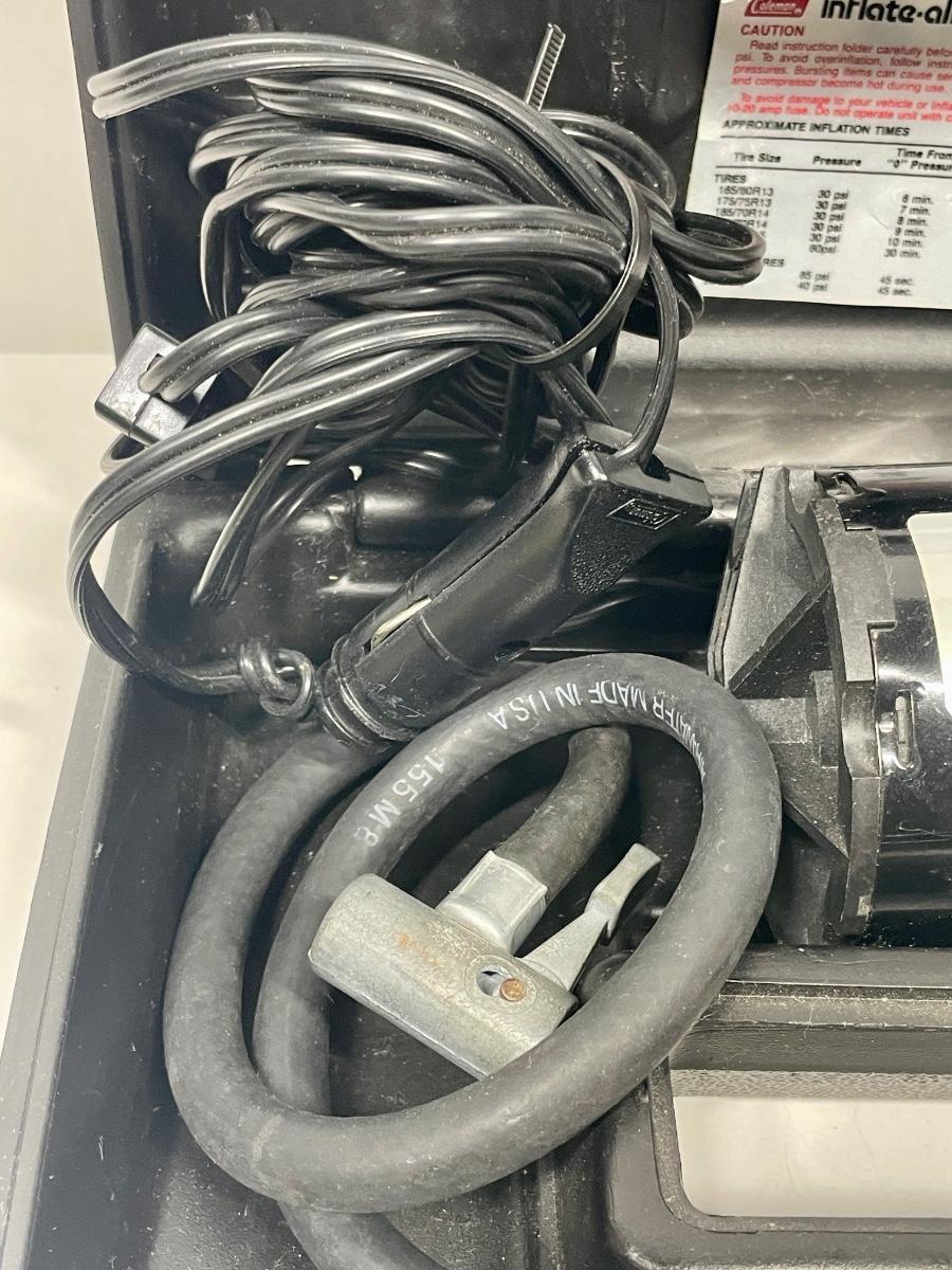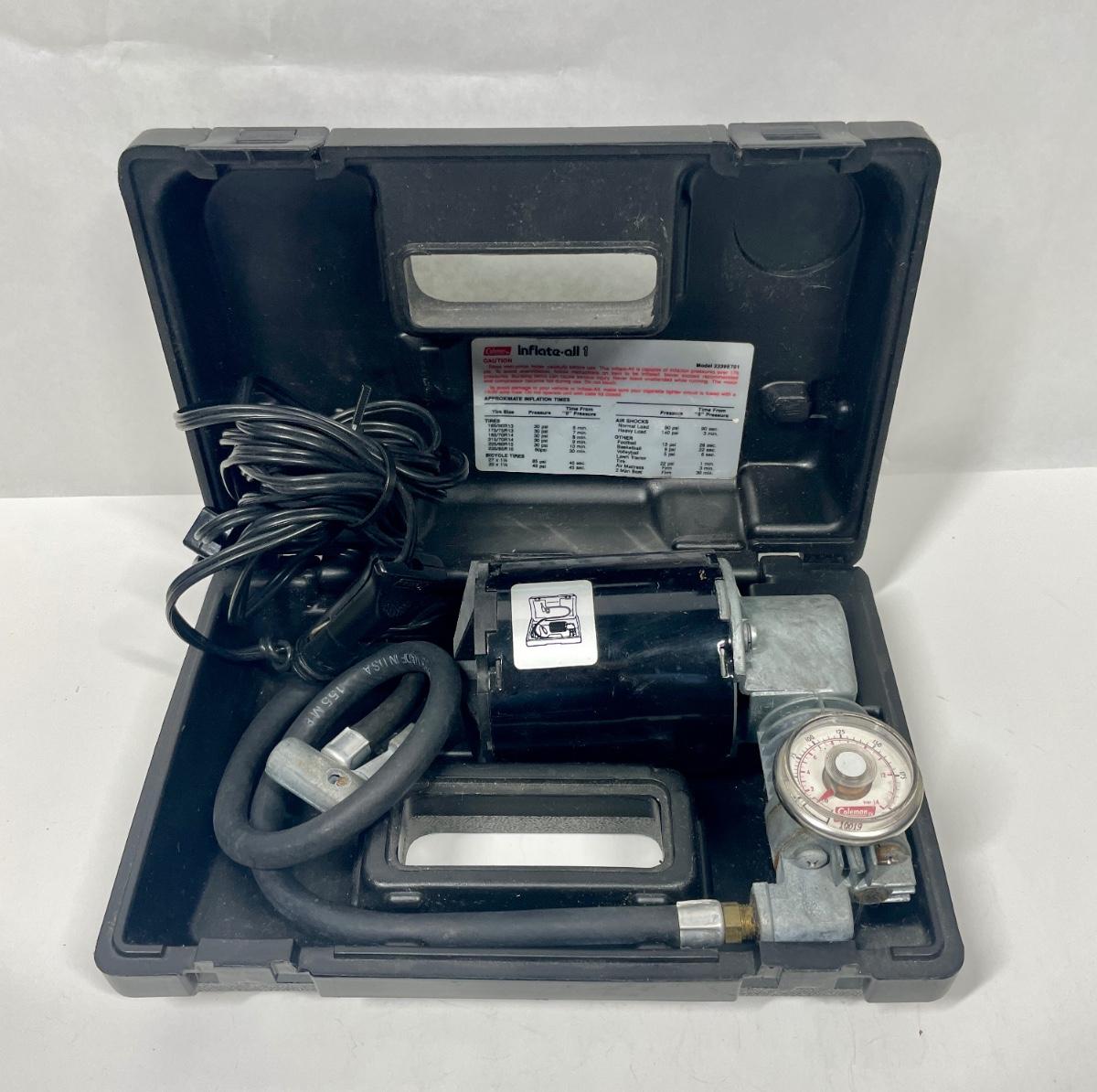 Coleman Inflate-All 1. 12V power source, plug designed for a car cigarette lighter or round accessory. Tested, works as expected.