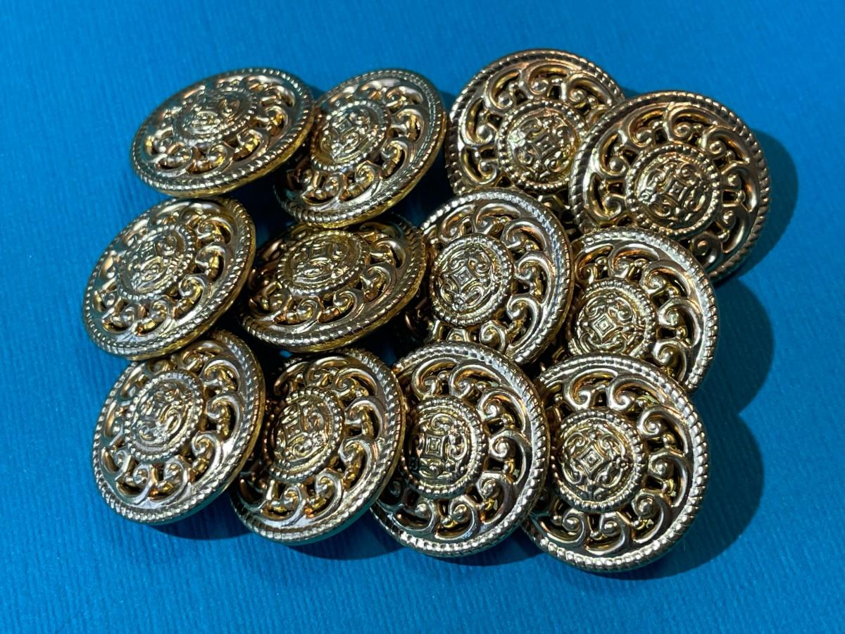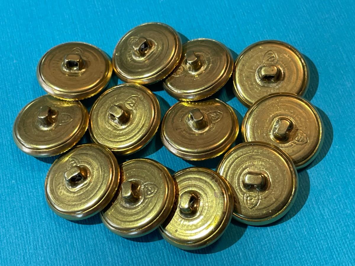 12-Vintage Brass Gilt Buttons 7/8" Diameter in Good Condition as Pictured. $5 Domestic Shipping.
