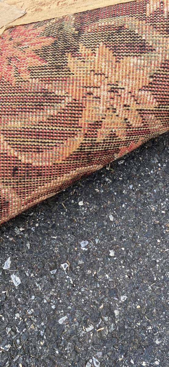 Preowned area rug shows fading from sun exposure in certain areas, mostly very nice preowned condition