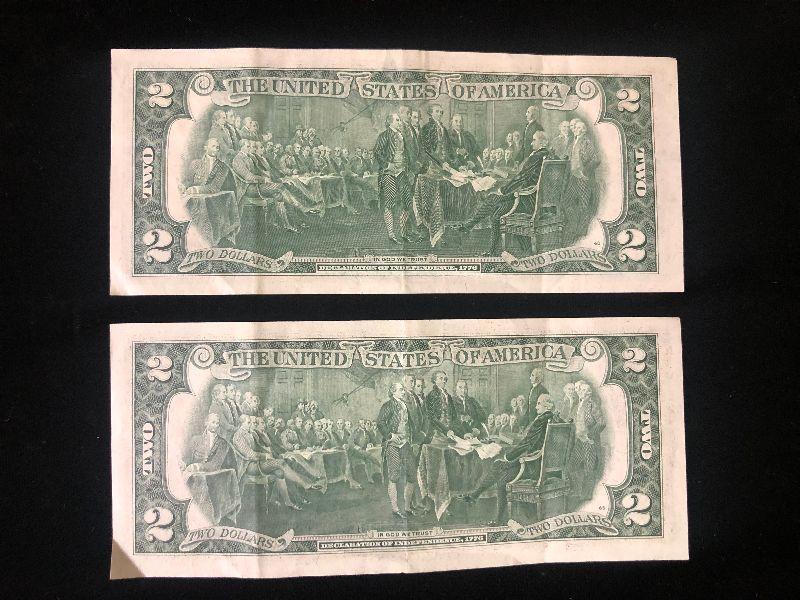 #13 (2) 1978 Green Seal Two Dollar Bills USA