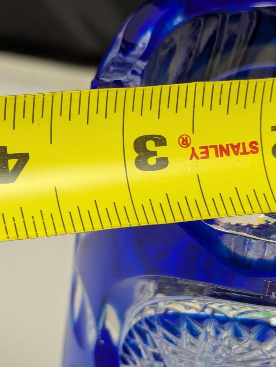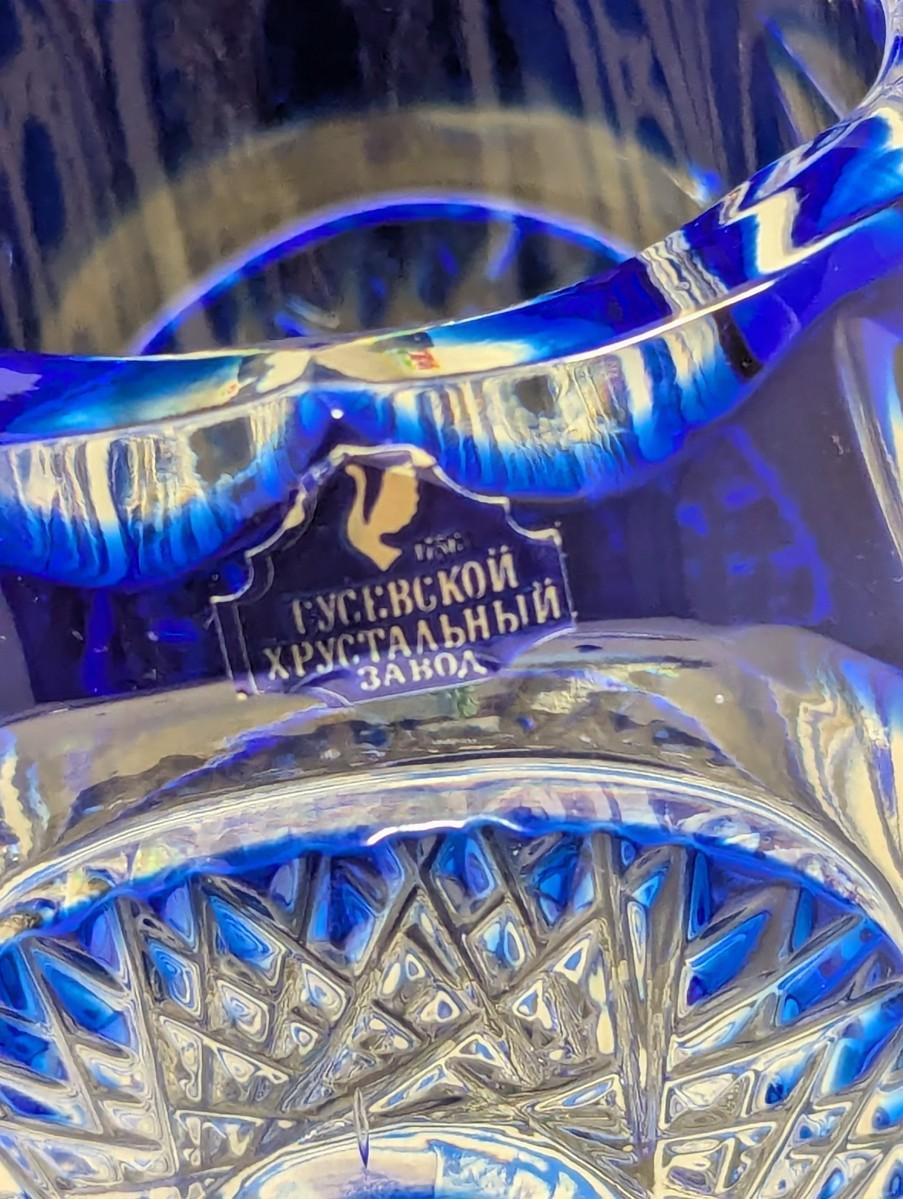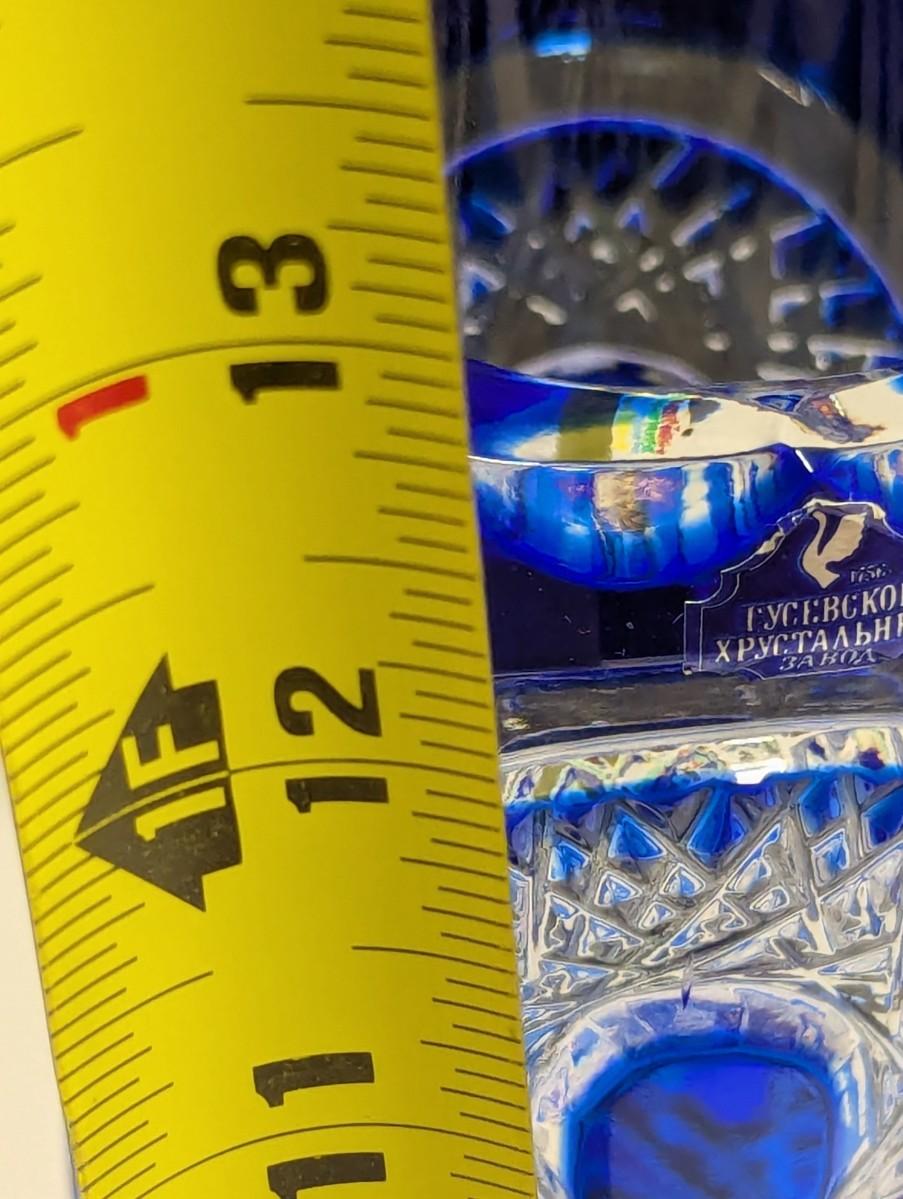 13 3/4" Tall Hand Made Cobalt Blue Cut Etched 10" Vase USSR - Russia - Sticker (DR)