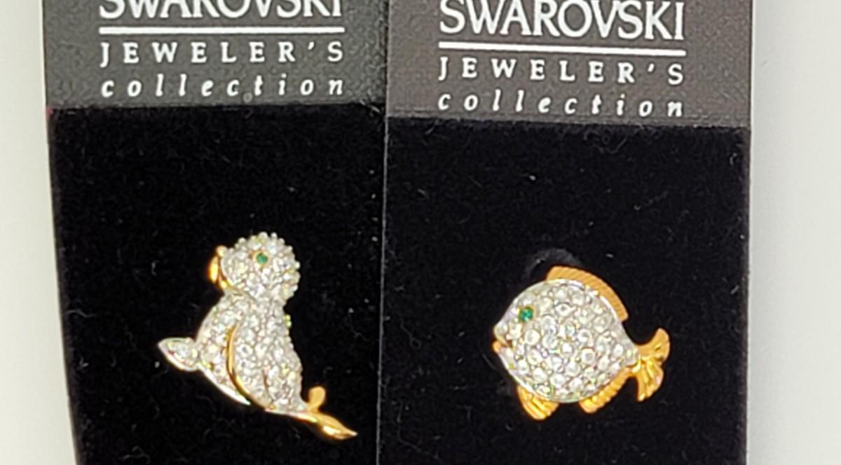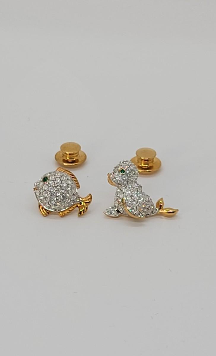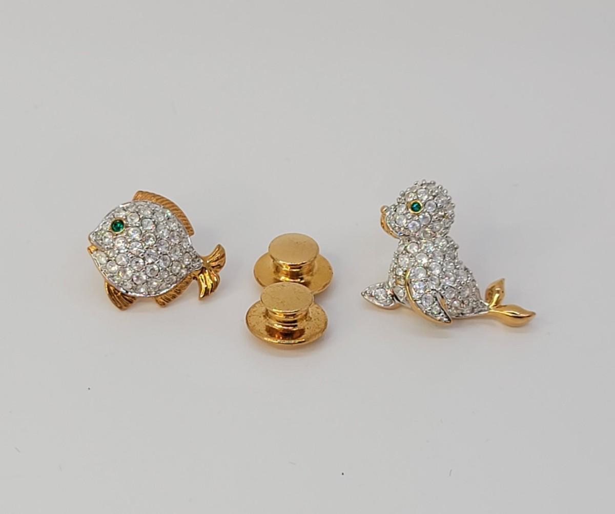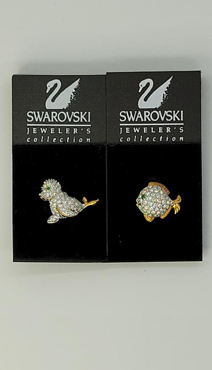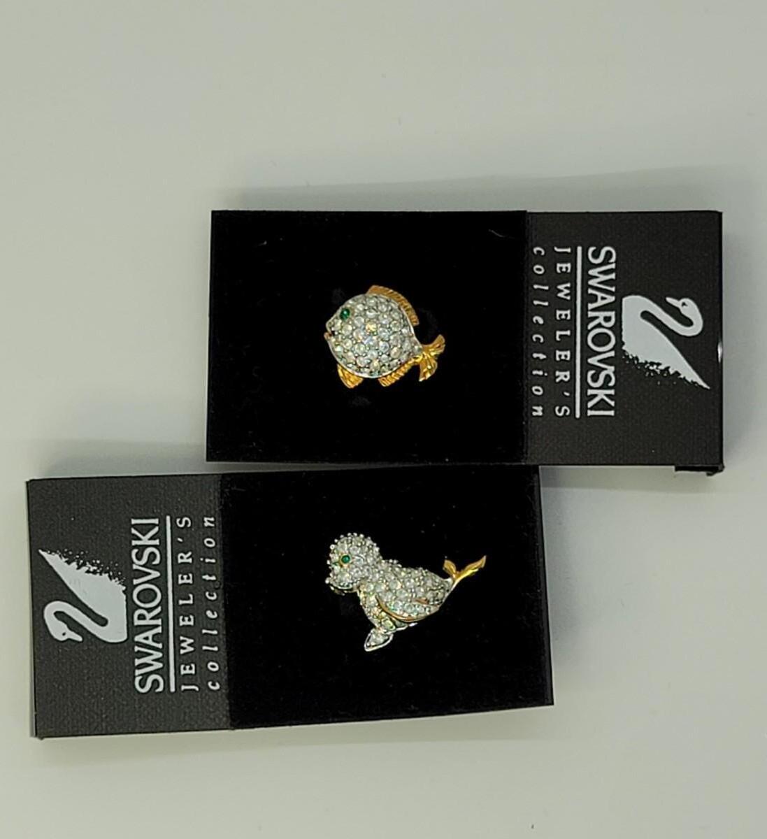 13: New Swarovski Crystal Lapel Pins: Seal and Fish