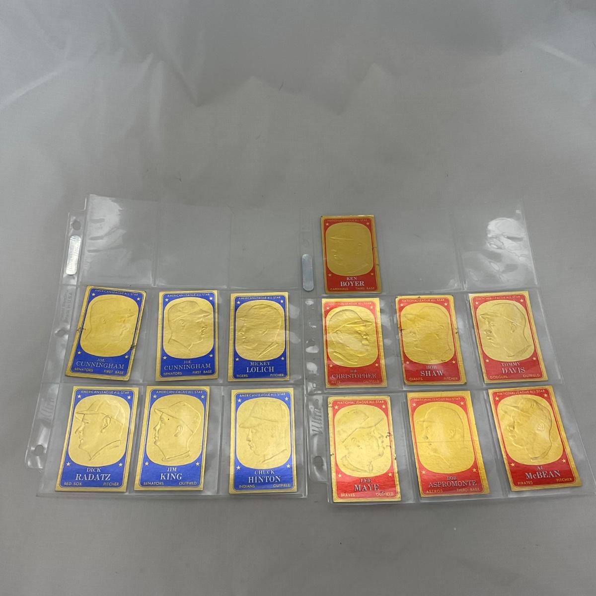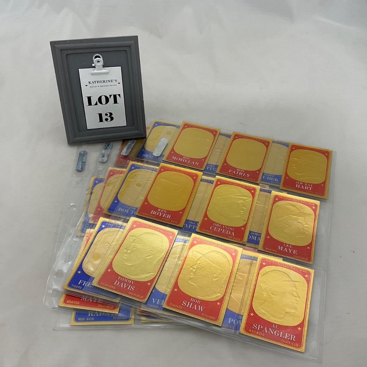 Collection of 1965 TOPPS embossed vintage baseball cards. 4 pages of cards. There does seem to be some imperfections on some of the cards, as pictured. The 4 pages of cards will come with a binder to transport. Please see photos for details and condition. ::: Shipping is available on this lot. If you require shipping you must let us know at the close of the auction. We will coordinate with you after the item has been won. Shipping fees will include insurance up to or exceeding the value of all items being mailed. If you have any questions regarding this lot please contact the auctioneer either via this website, by direct email or by phone. PICK UP TIMES and other important information can be found in the TERMS and DESCRIPTION of the auction. Please take a look for pertinent information. Thanks!