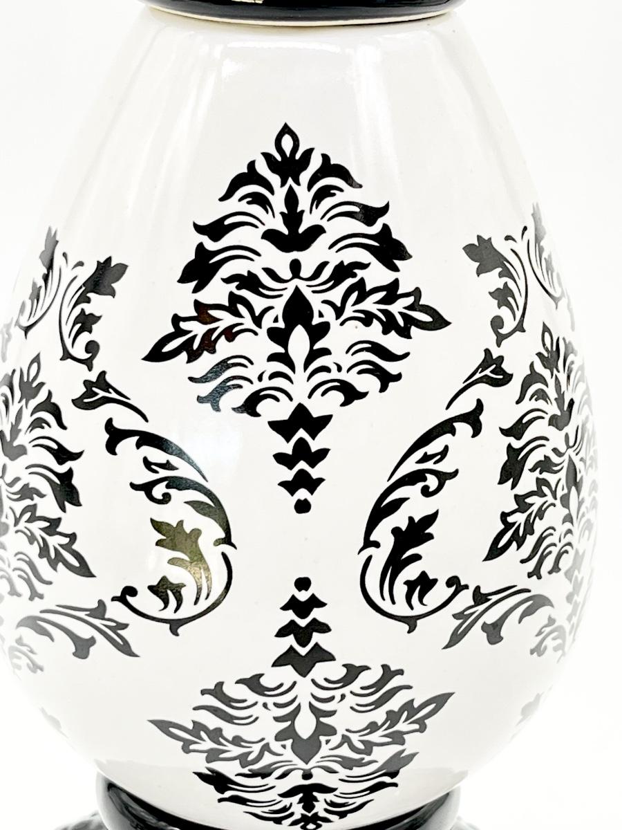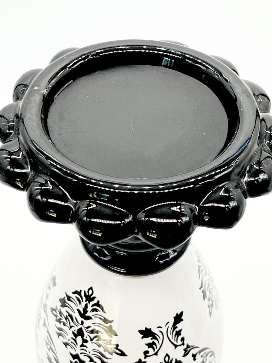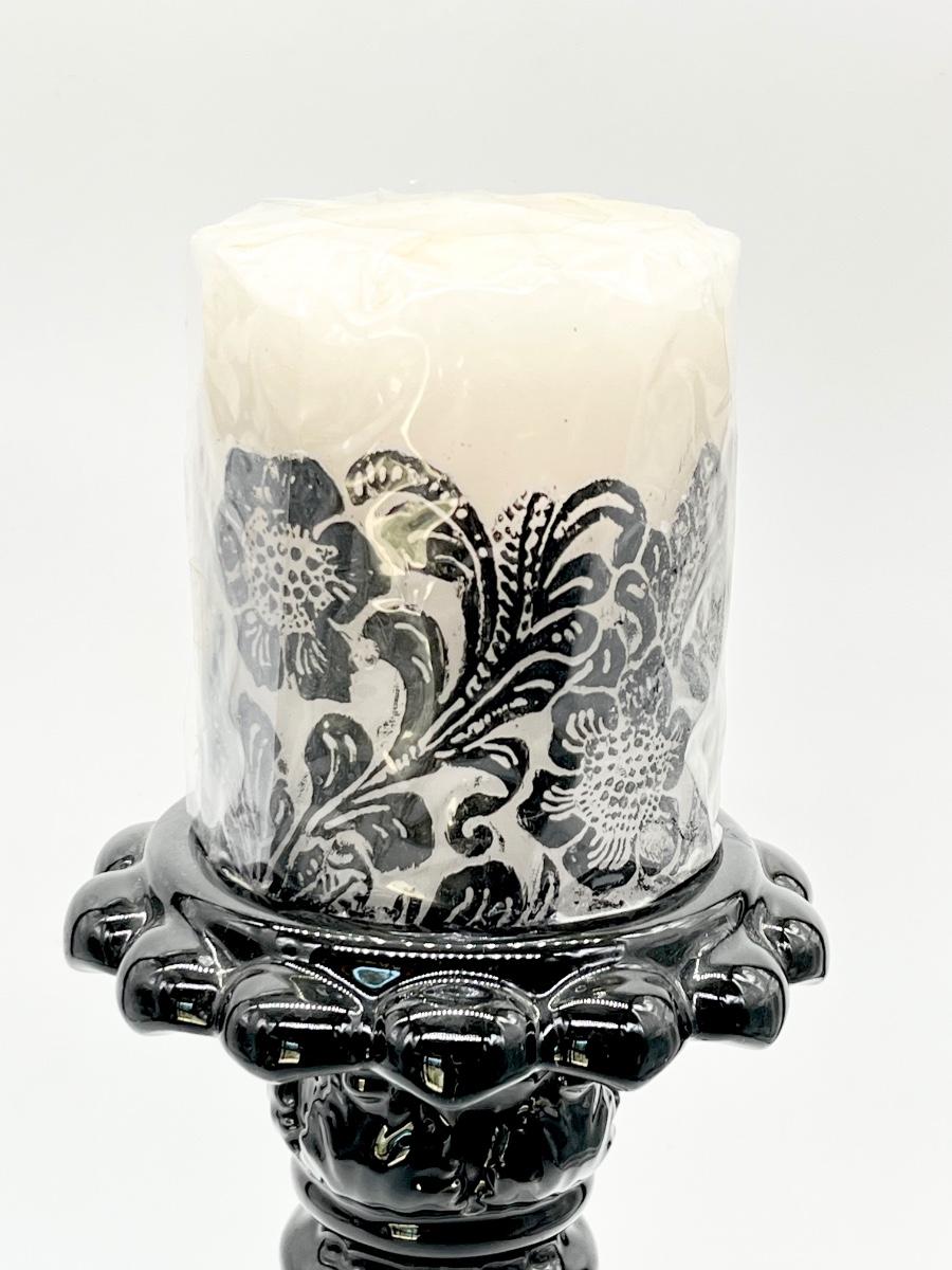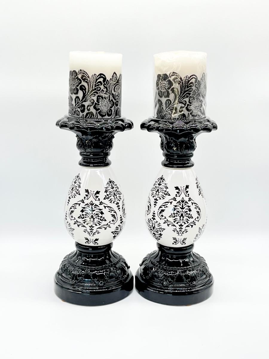 13” Black & White Ceramic Candlesticks ~ With 4” Decorative Candle