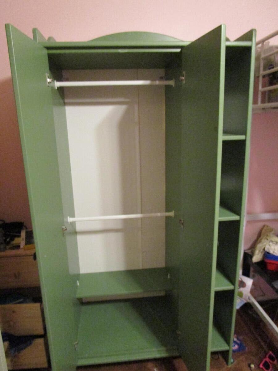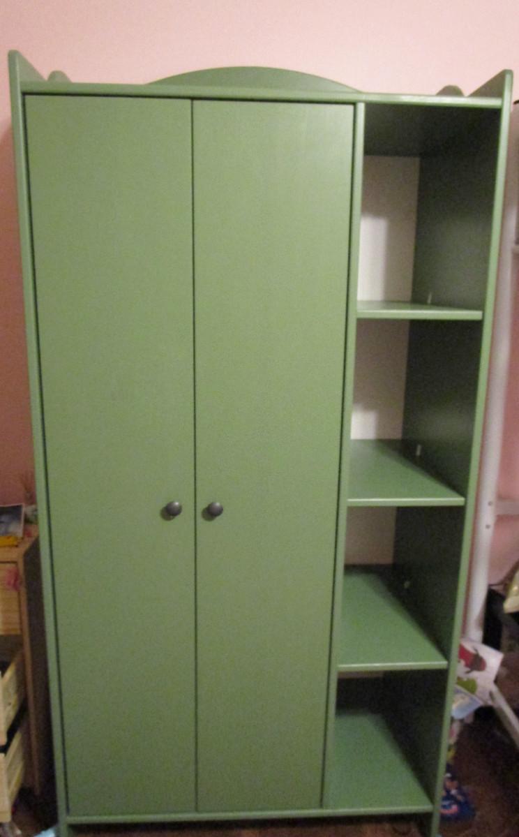 Child's Amoire, sage green, 71 1/2 tall, 35"wide, cube shelves 14"x19"x10"
