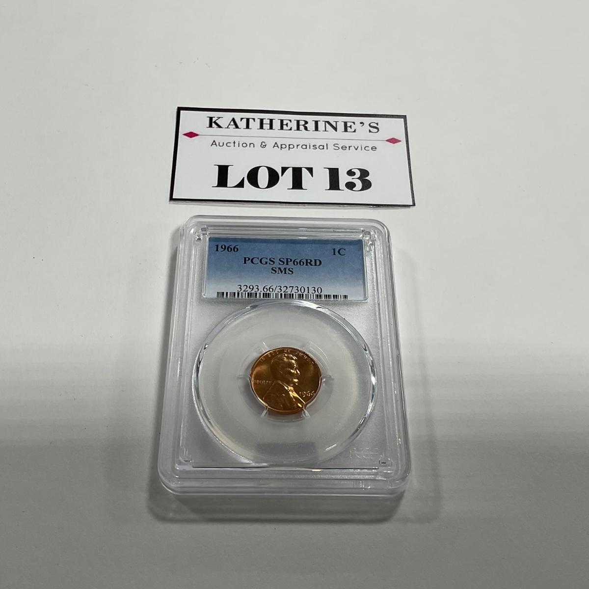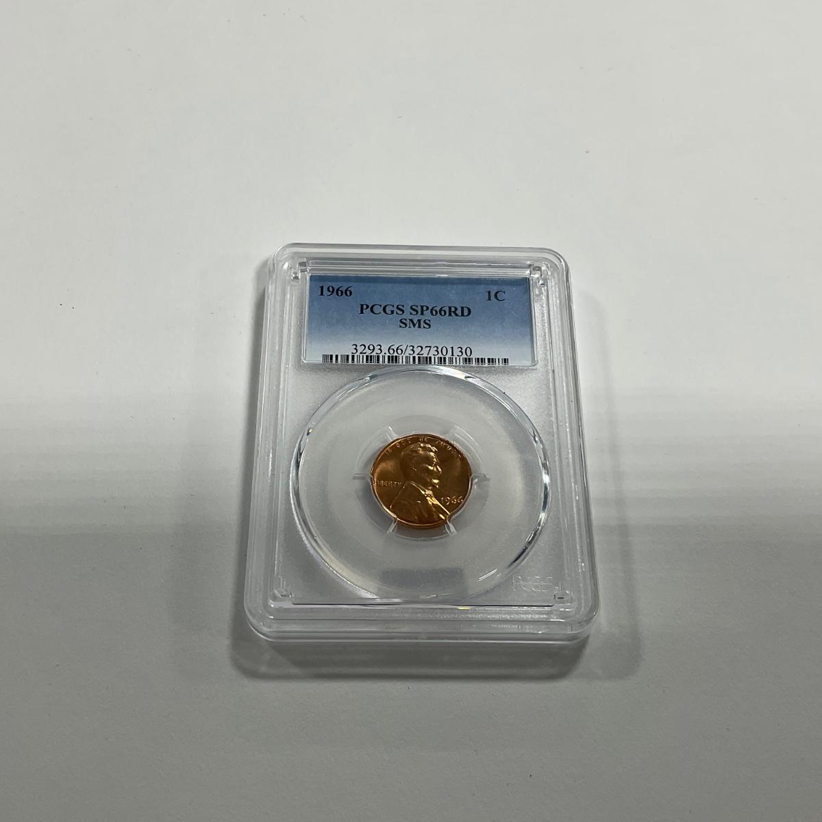 One graded 1966 Lincoln SP66 RD SMS coin. Please see photos for details and condition. ::: Shipping is available on this lot. If you require shipping you must let us know at the close of the auction. We will coordinate with you after the item has been won. Shipping fees will include insurance up to or exceeding the value of all items being mailed. If you have any questions regarding this lot please contact the auctioneer either via this website, by direct email or by phone. PICK UP TIMES and other important information can be found in the TERMS and DESCRIPTION of the auction. Please take a look for pertinent information. Thanks!