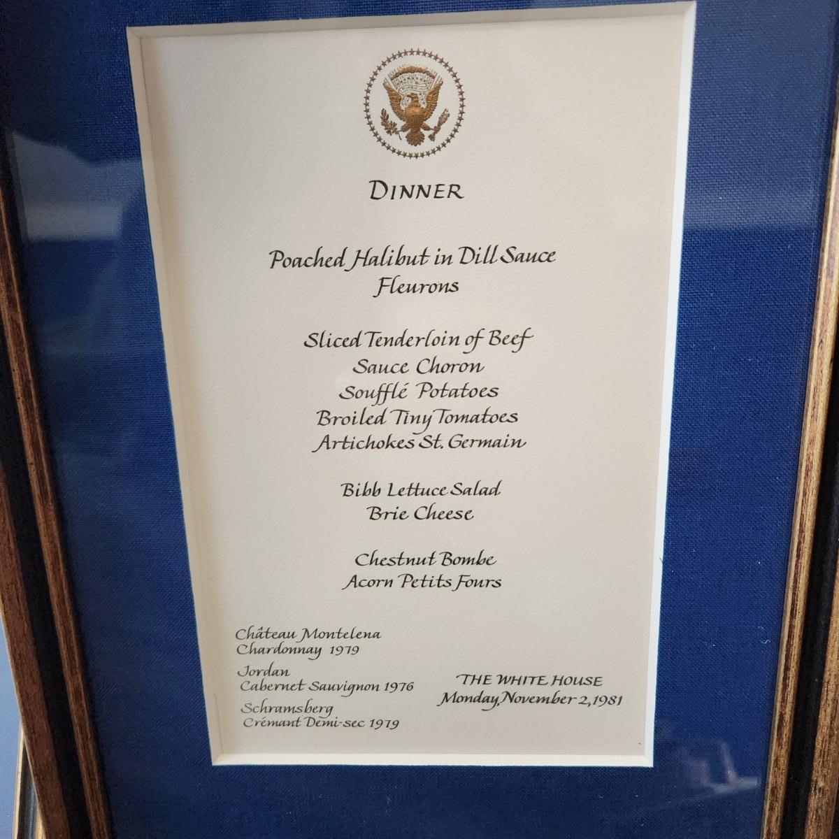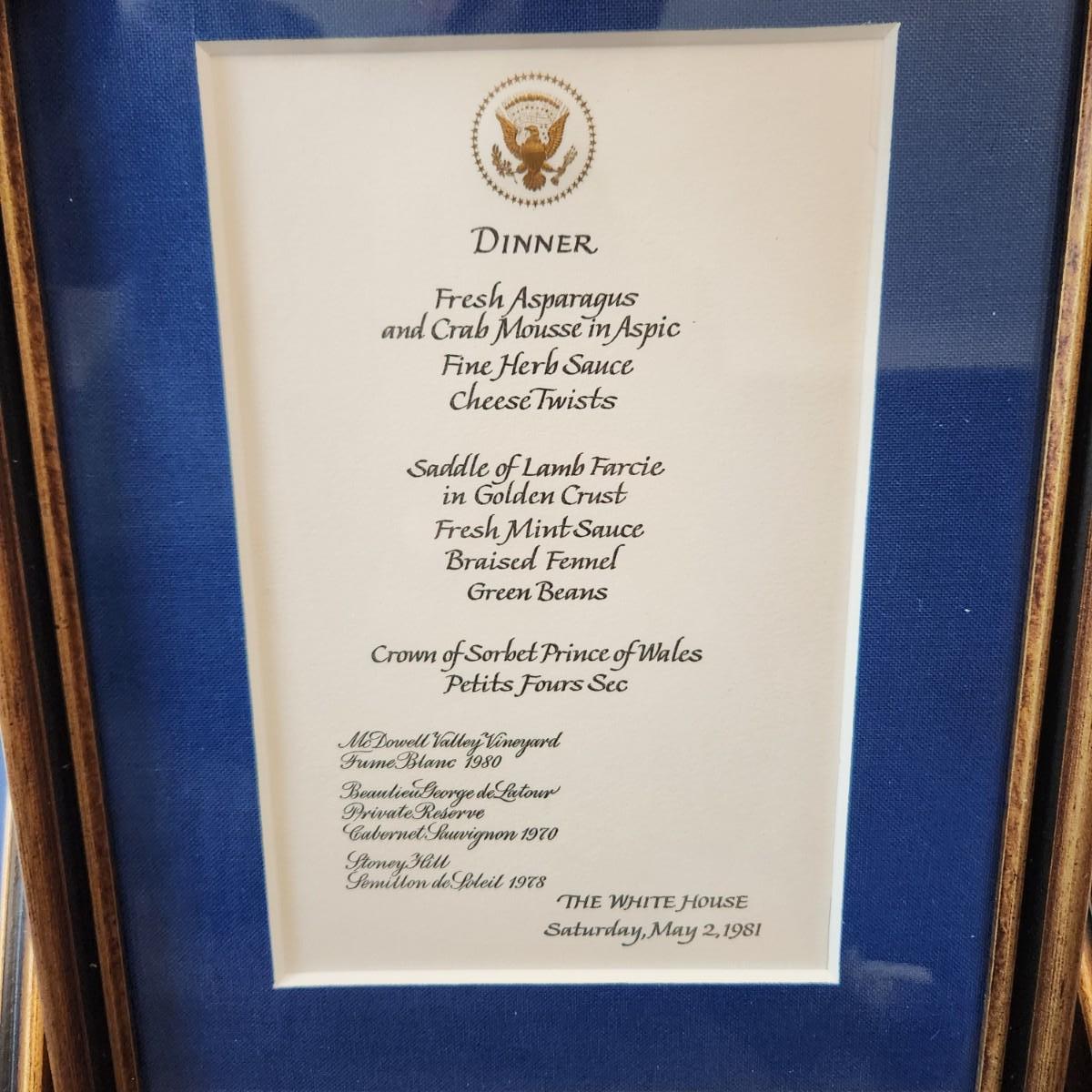 13 Different White House Menus Framed Luncheon Dinner