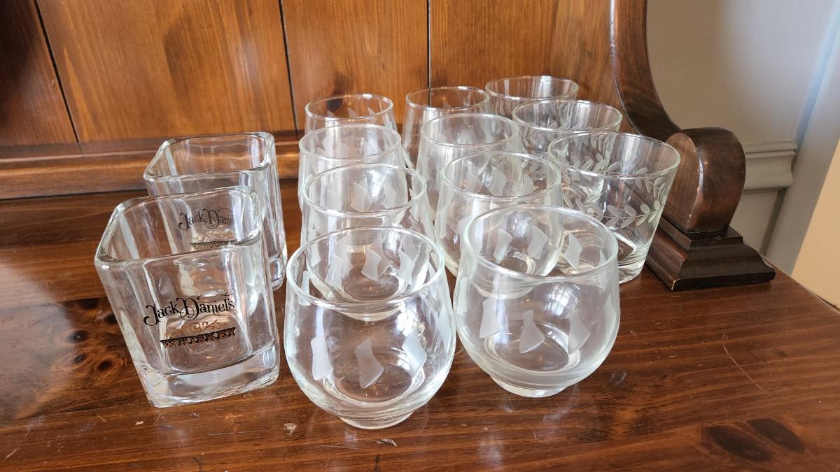13 Drinking Glasses 2 Jack Daniels 11 Vintage Etched Barware