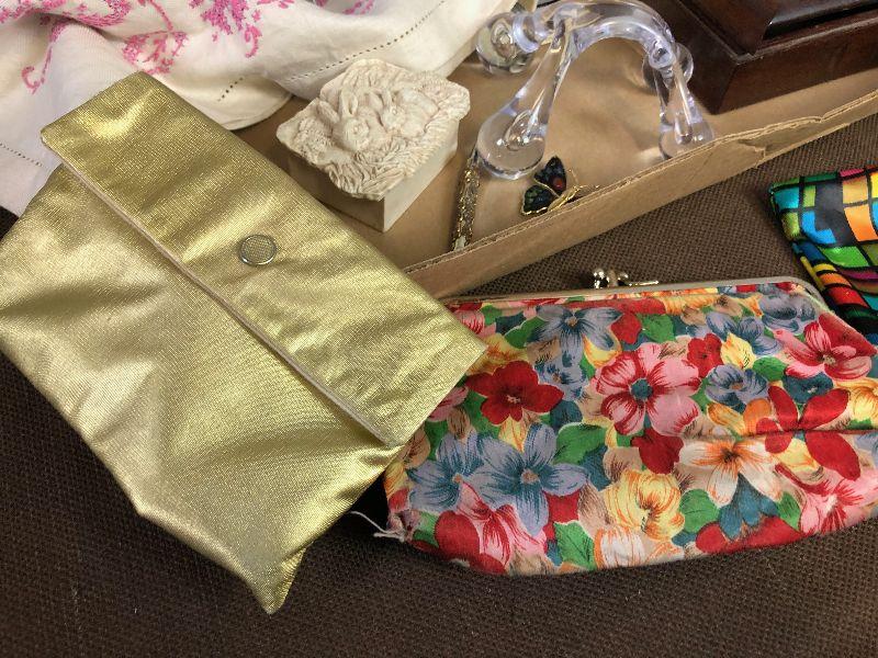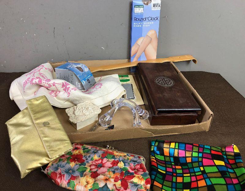 Nylons, Coin Purse, Jewelry Box, purses etc. new and used.
