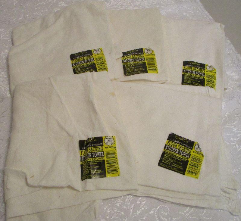 Five New Flour Sack Kitchen towels with tags, 29"x28"