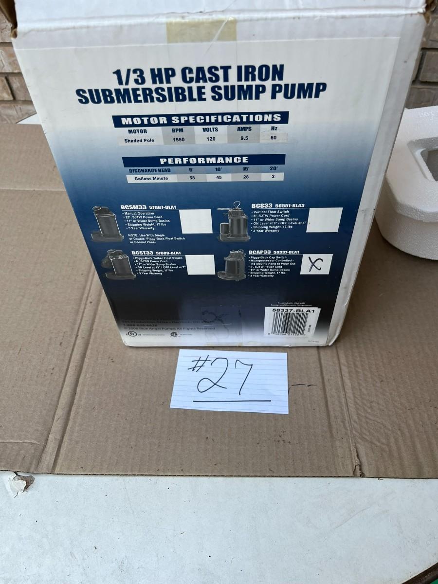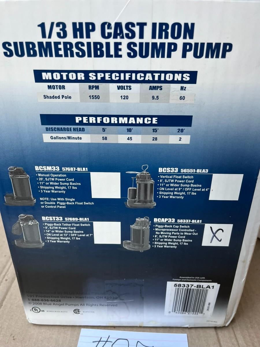 1/3 HP Cast Iron Submersible Sump Pump New In Box