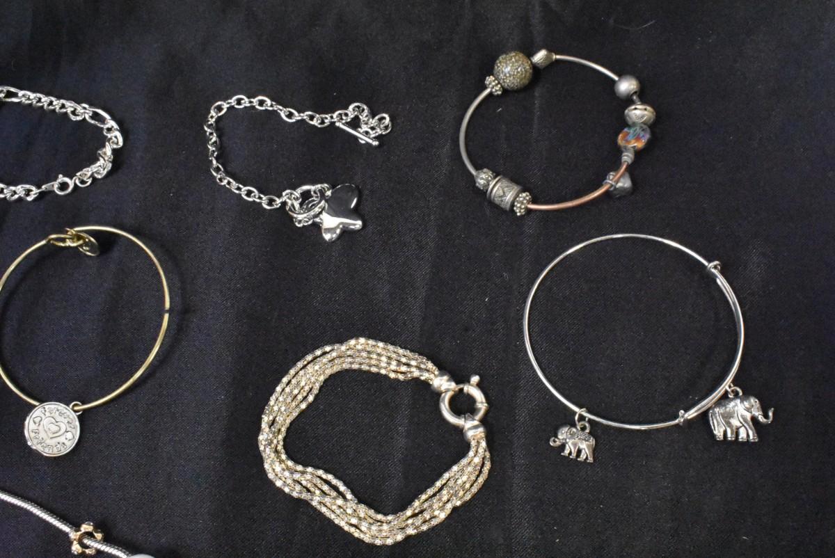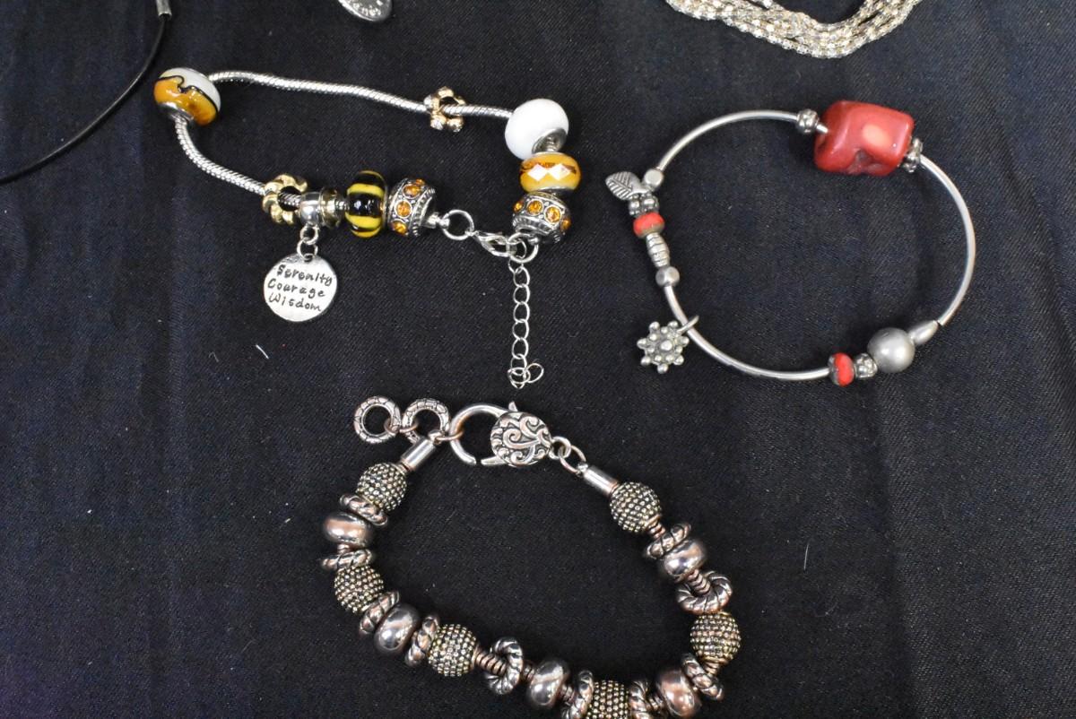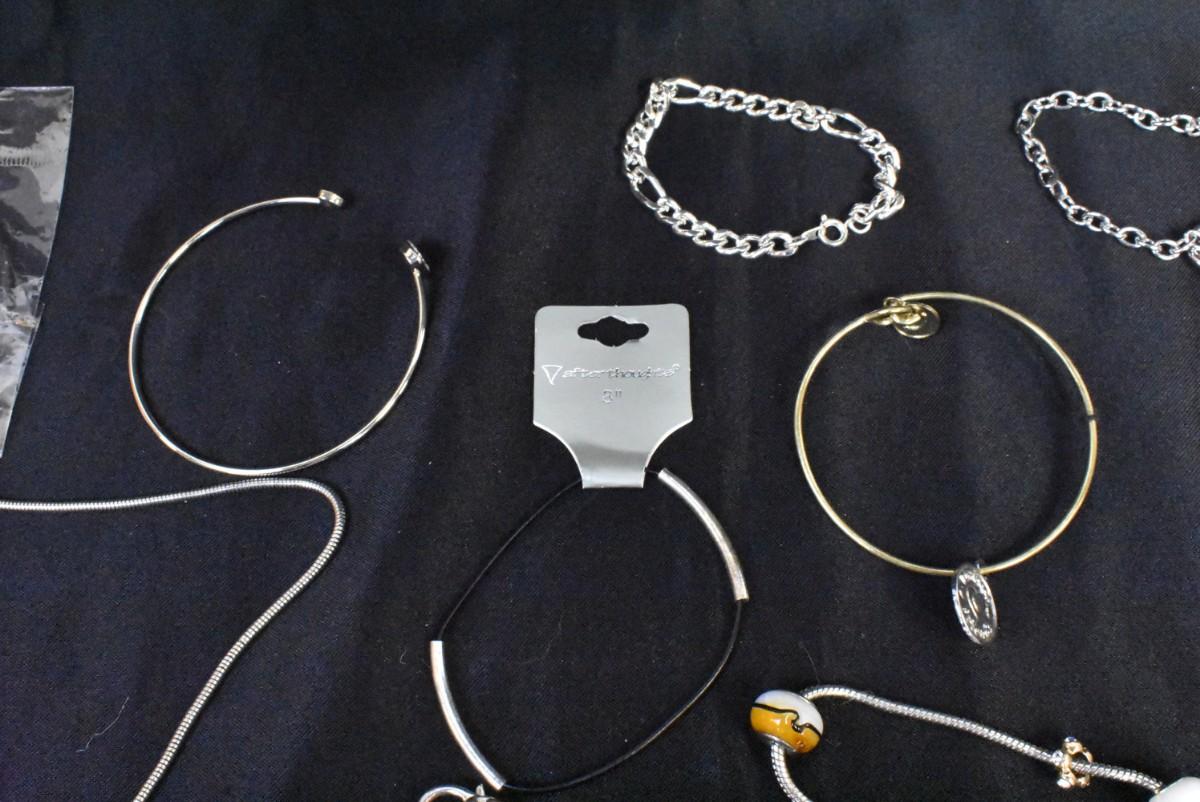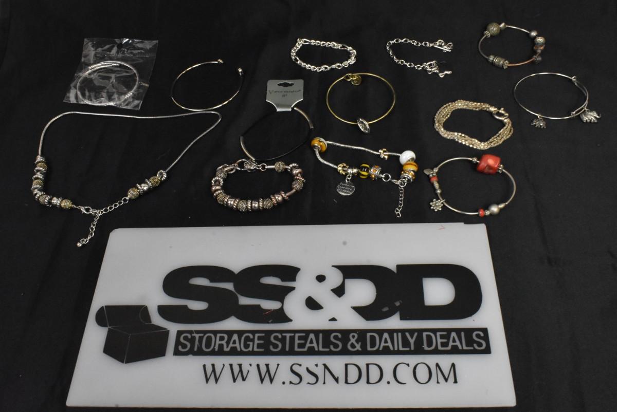 13 pc Costume Jewelry Items Various Charm Bracelets/Necklaces + Other Unique Pieces, Gold & Silver Toned