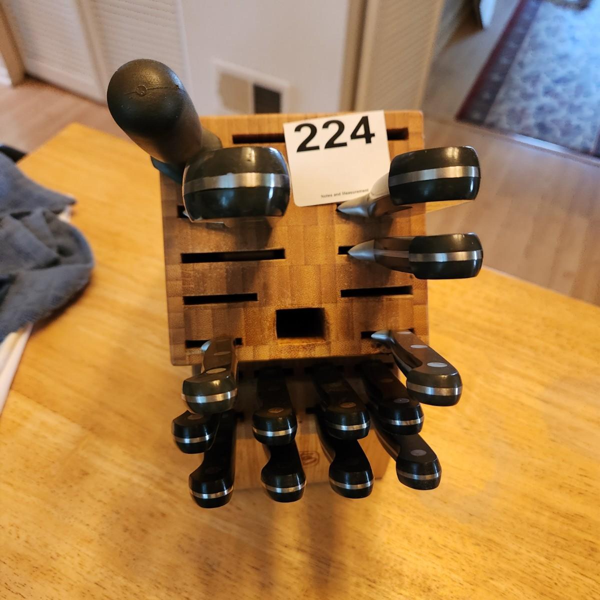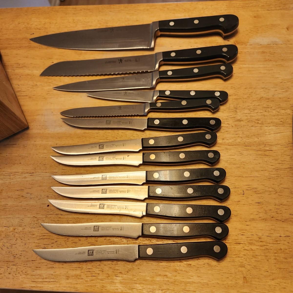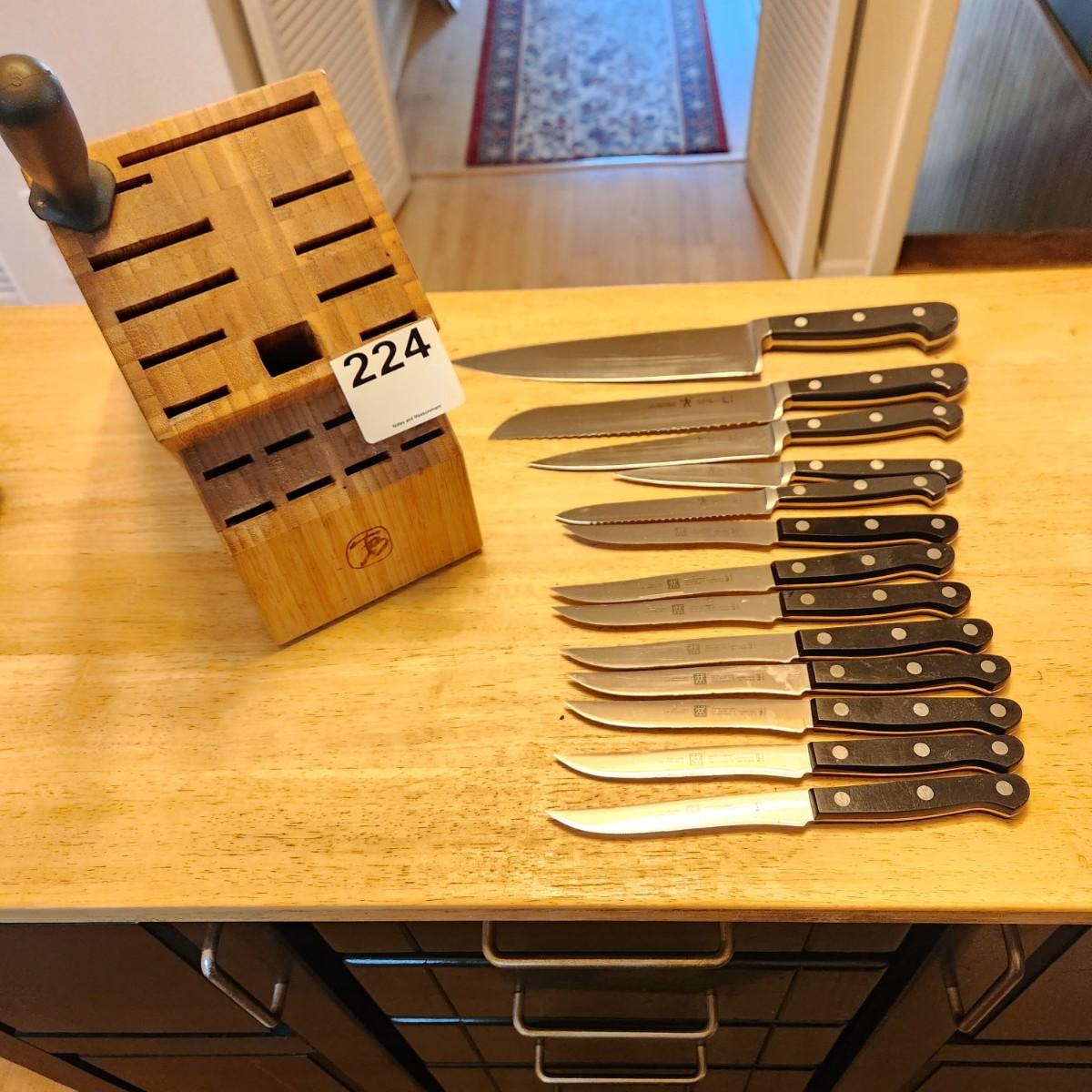 13 J.A. Henckels Gourmet Knives in Wood Block with Sharpener Steel
