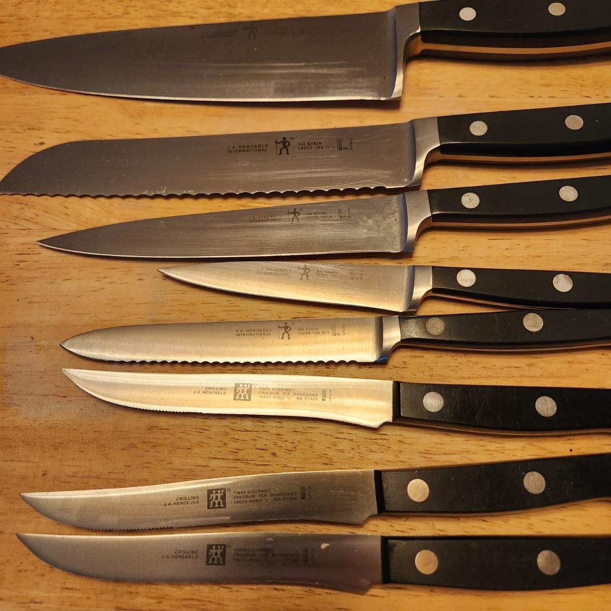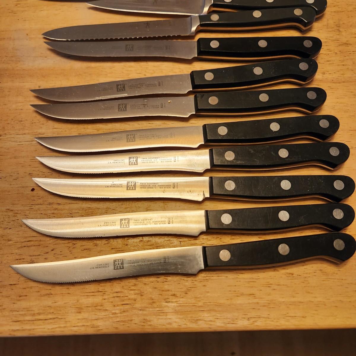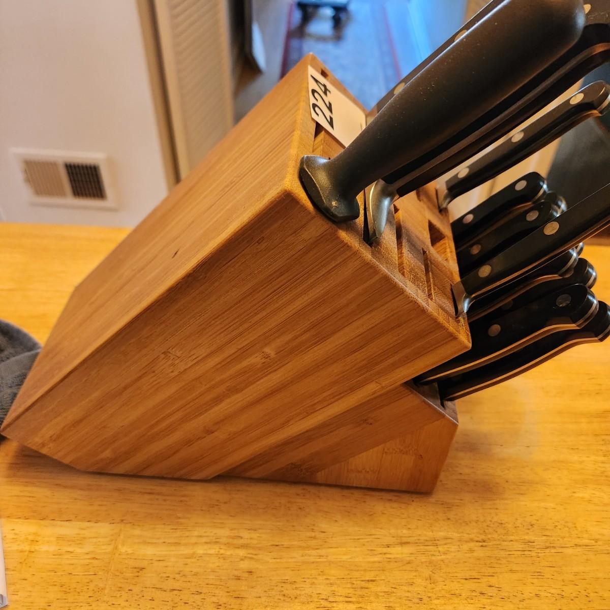13 J.A. Henckels Gourmet Knives in Wood Block with Sharpener Steel